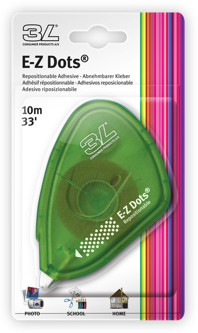 Nietrwała taśma fotograficzna od 3L. Taśma składa się z małych samoprzylepnych kropek w kolorze fioletowym. Dzięki swojemu kolorowi łatwo jest zobaczyć kropki i usunąć je, gdy skończysz. Jedna rolka zawiera 10 metrów taśmy o szerokości 9 mm.