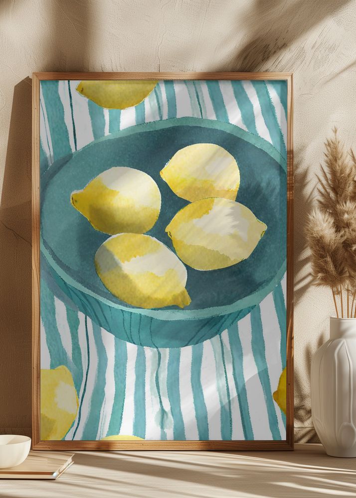 Zitronen in türkisfarbener Schale Plakat