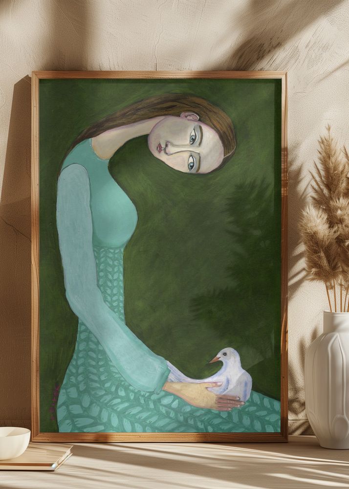 https://www.bgastore.pl/Lady-sitting-with-white-dove-bird-woman-Plakat-40x60-cm