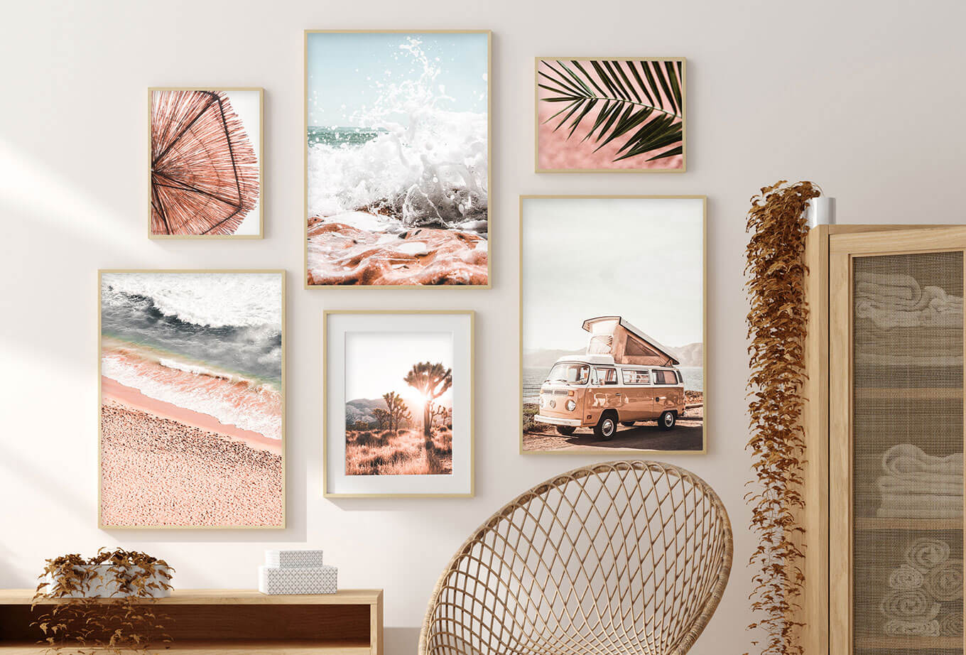 Znajdziesz tutaj inspiracje i porady dotyczące udanej ściany z obrazami! Nasze gotowe zestawy zostały stworzone z myślą o tych, którzy chcą mieć spójną koncepcję z obrazami, które w różny sposób dodają czegoś ekstra, gdy są ze sobą połączone. Wybierając jeden z tych zestawów, oszczędzasz czas na dopasowywaniu motywów i ram samodzielnie. W zestawach znajdziesz niektóre z naszych najpopularniejszych plakatów i ram. Obrazy są umieszczone w pomieszczeniach, w których pasują wyjątkowo dobrze. Celem jest, aby były przykłady ścian z obrazami dla wszystkich rodzajów wnętrz i osobowości.