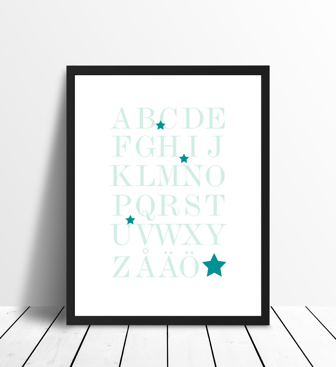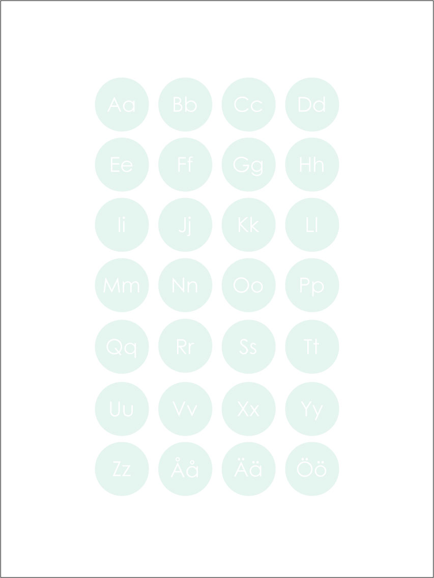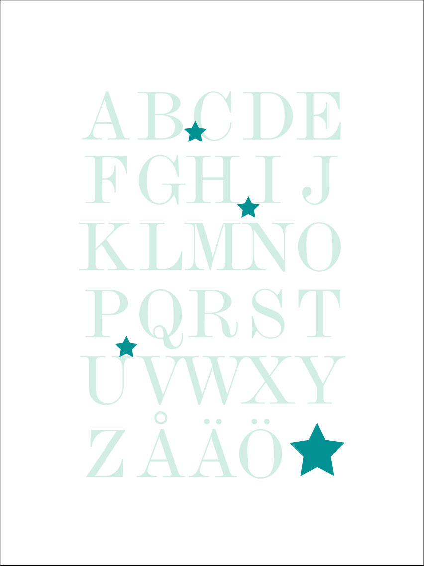 Druk graficzny z całym alfabetem, A-Ö, w morskich odcieniach zielono-turkusowym. Pedagogiczny motyw doskonale nadaje się do pokoju dziecięcego do ćwiczenia alfabetu, ale także na inne ściany w domu. Eleganckie wzornictwo sprawia, że plakat pasuje do wszystkich stylów wnętrz i typów domów. Połącz go z innymi obrazami, tworząc ścianę tematyczną, lub udekoruj ścianę plakatem z cyframi 1-10.