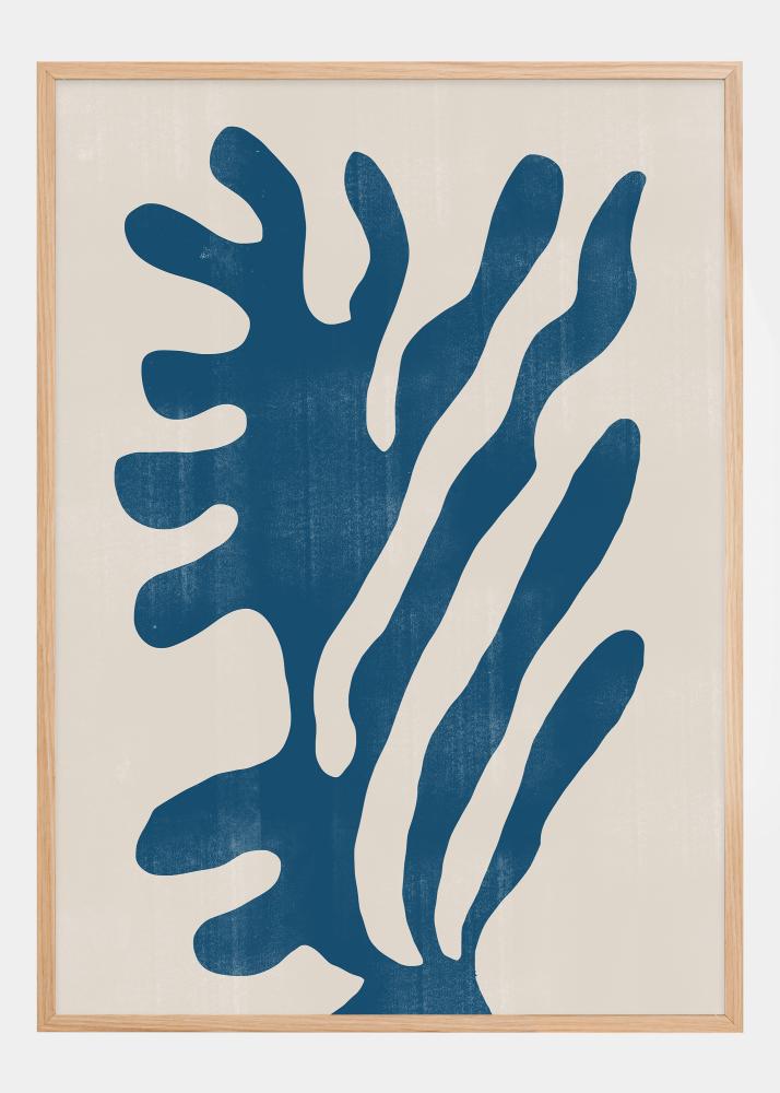 Ten śmiały i żywy plakat uchwyca esencję abstrakcyjnej roślinności swoimi falującymi niebieskimi liniami na kremowym tle. Stylizowany motyw przypomina podwodną roślinność lub pióra tańczące na wietrze, co nadaje poczucie wolności i natury. To dzieło sztuki łączy organiczne piękno z nowoczesną estetyką projektowania graficznego.