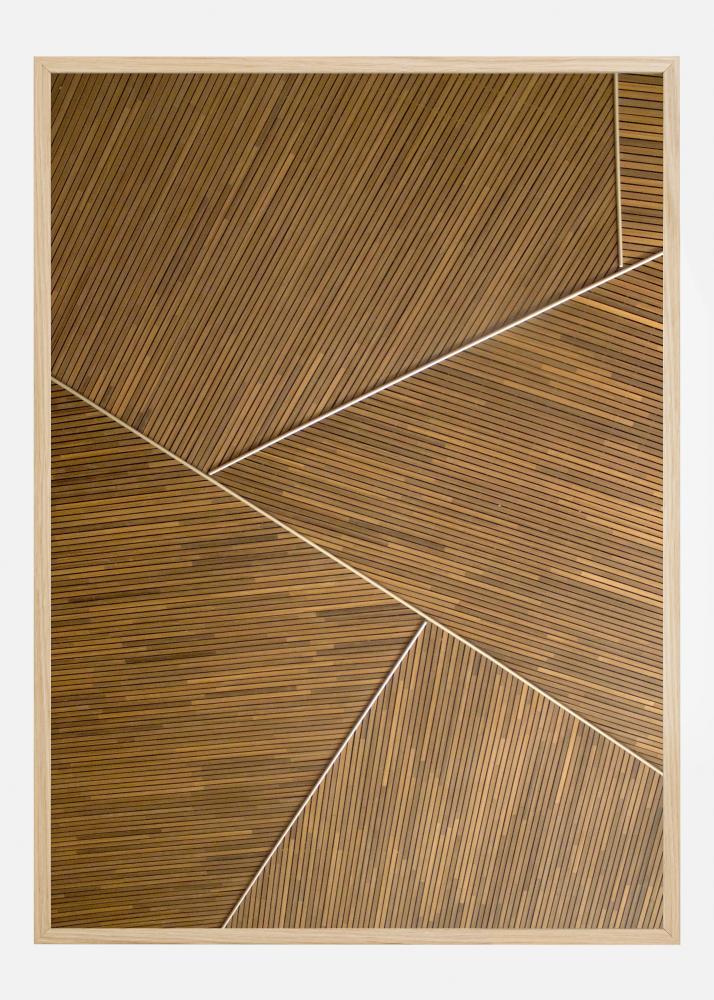 Plakat z drewnianym wzorem z abstrakcyjnymi geometrycznymi formami. Wyobraź sobie, że drewniane deski wpasowują się w siebie w tym prostym wzorze. Kąty desek przyciągają wzrok wokół dzieła, a białe linie stanowią nienaganne punkty fokusowe. Spraw, by wyróżniało się to na prostej neutralnej lub białej ścianie w twoim domu.