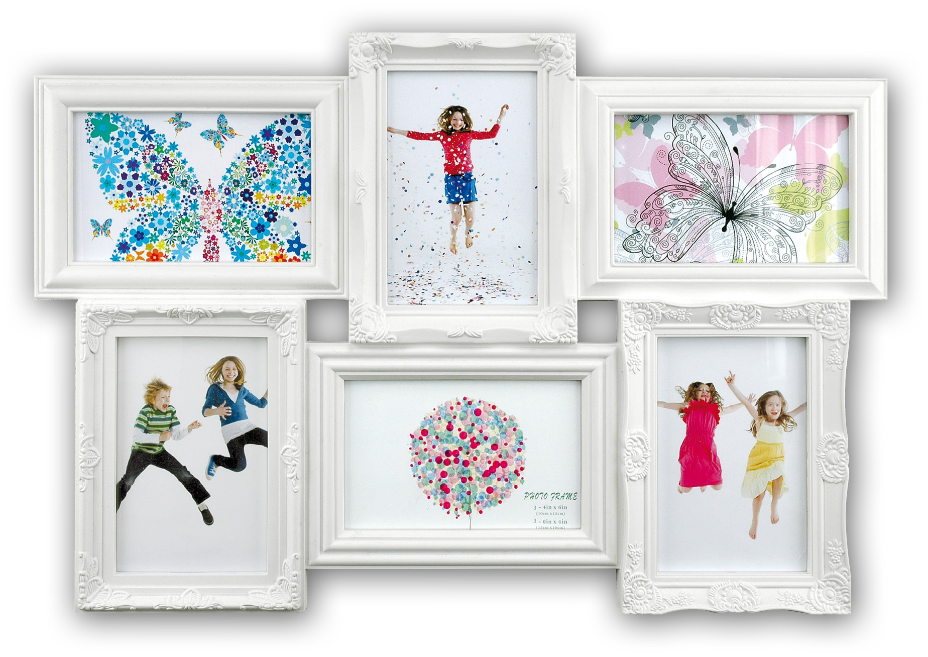 Pięknie ozdobiona rama kolażowa w białym kolorze z szerokim profilem w klasycznym stylu. Idealna do zdjęć, które szczególnie lubisz.
