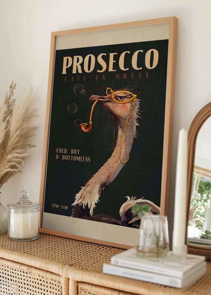 Art Deco Prosecco Wall Art Of An Ostrich Plakat