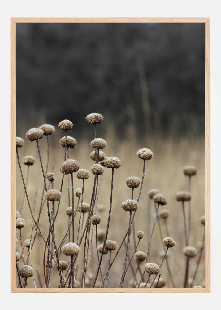 Prosty plakat z polem dzikich kwiatów. Te kwiaty są w centrum uwagi, podczas gdy reszta pola blednie z odległością, a wzrok zatrzymuje się na kwiatach. Dopasuj delikatne kolory tego druku do miękko niebieskiej ściany, aby uzyskać dobry kontrast.