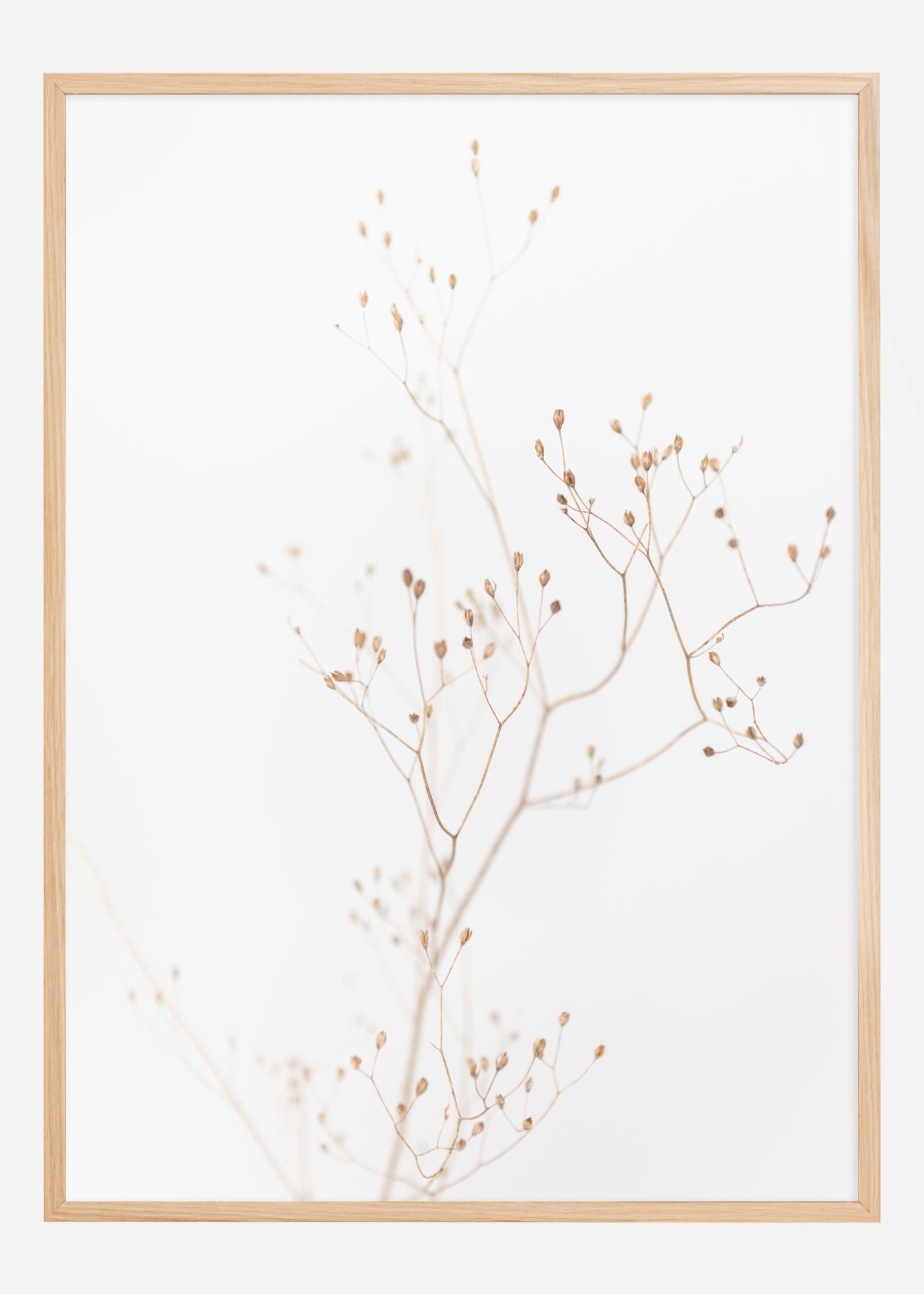 Ten plakat uchwyca subtelne piękno gałęzi z suchymi owocostanami, przedstawionymi na tle spokojnego, neutralnego tła. Delikatne linie i stonowane tony tworzą poczucie spokoju i naturalnej elegancji. Ten obraz jest nastrojowym przypomnieniem o spokojnej stronie natury, gdzie nawet najcichsze elementy mają swoje własne piękno i siłę.