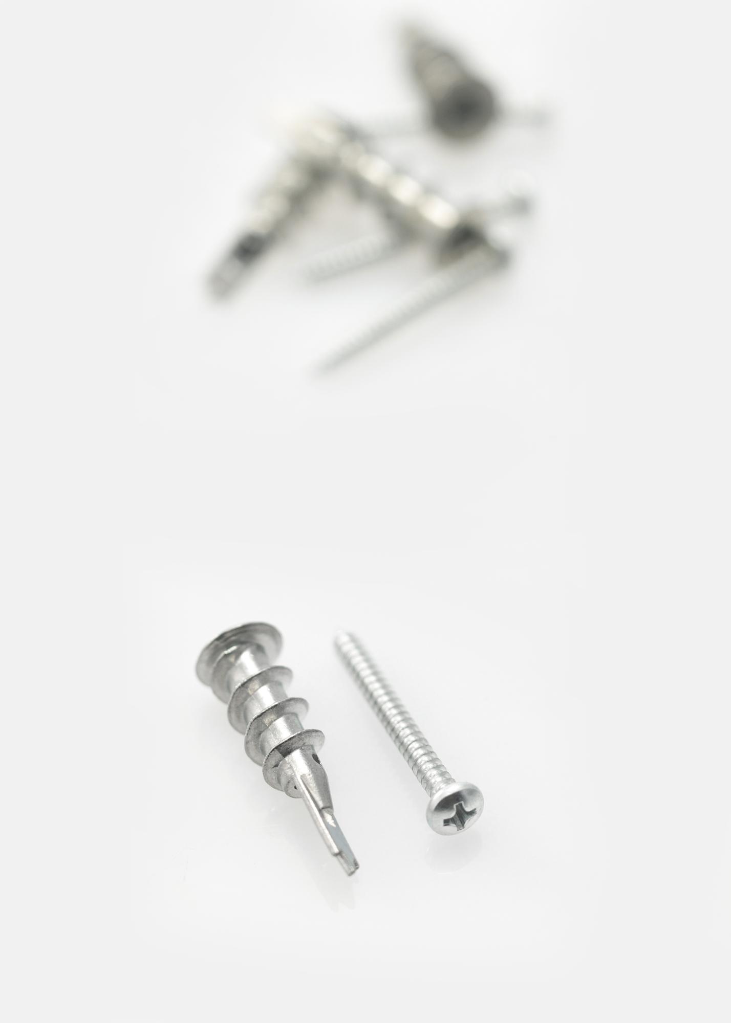 Samoborujące kotwy gipsowe w opakowaniu 4 sztuk. Wystarczy wkręcić kołek, a następnie śrubę, i gotowe. Nie trzeba wiercić. Idealnie pasuje do wszystkich naszych obrazów, które mają być zawieszone na ścianie gipsowej.