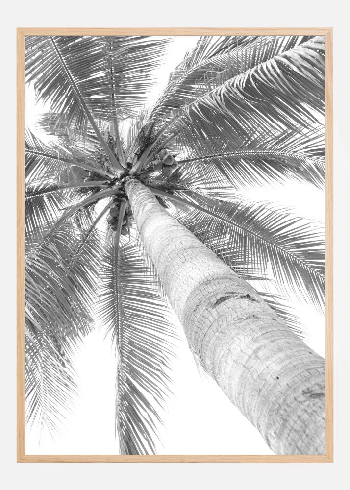Ten minimalistyczny i elegancki czarno-biały plakat przedstawia palmę z niezwykłej perspektywy, z widokiem skierowanym w górę ku niebu. Kontrast między szczegółowym listowiem palmy a gładką korą tworzy dynamiczną teksturę, która uchwyca esencję tropikalnego piękna. Czarno-białe wykończenie dodaje ponadczasowego i wyrafinowanego charakteru, który podnosi wystrój każdego pomieszczenia.