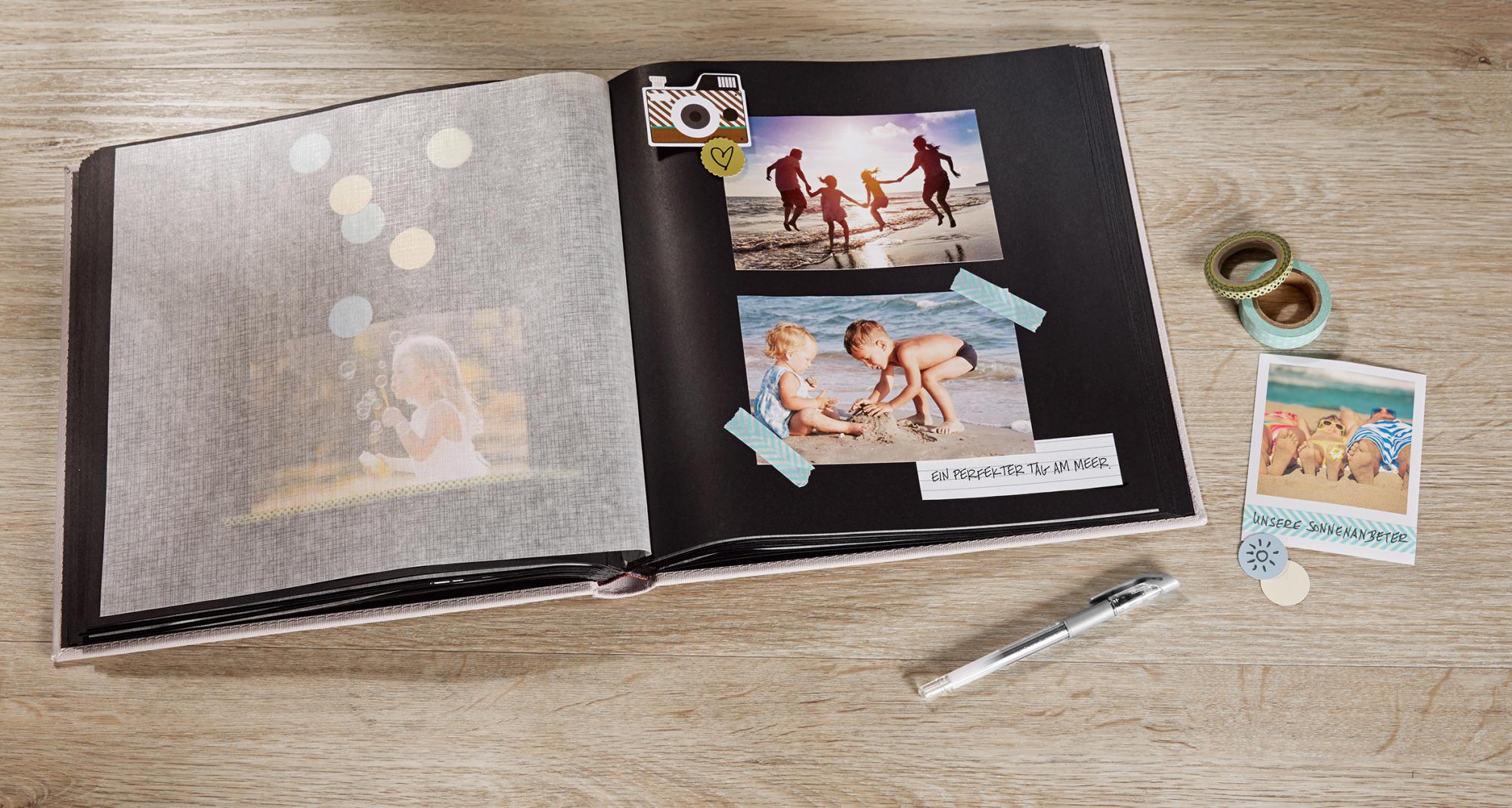Uzupełnij go na przykład o rogi do zdjęć, aby montaż zdjęć był jeszcze łatwiejszy. Jeśli chcesz zapisać coś o swoich wspomnieniach, mamy również wysokiej jakości pióra w różnych pięknych kolorach. Na czarnym tle najlepiej sprawdzi się pióro w kolorze złota lub srebra.