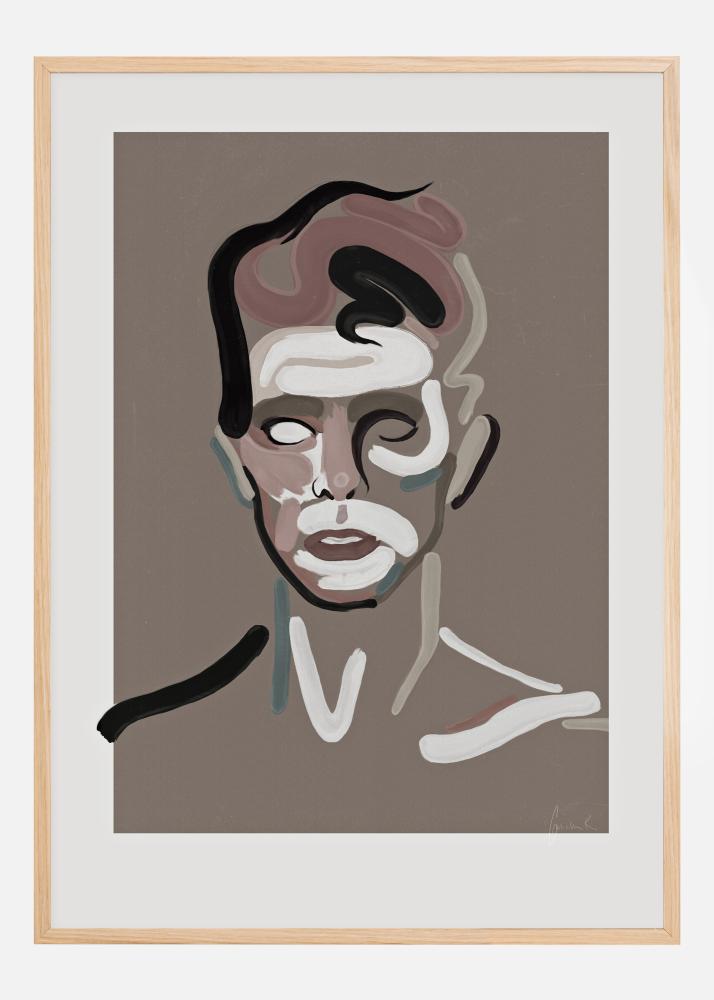 Abstrakcyjny plakat portretowy przedstawiający Davida Bowiego wykonany grubymi pociągnięciami pędzla. Użyto bieli, czerni, niebieskiego i różowego, aby stworzyć efektowny portret. Odważne linie szkicują twarz, gdy patrzy, tworząc przekonujące, abstrakcyjne dzieło idealne do ożywienia zwykłej ściany.
