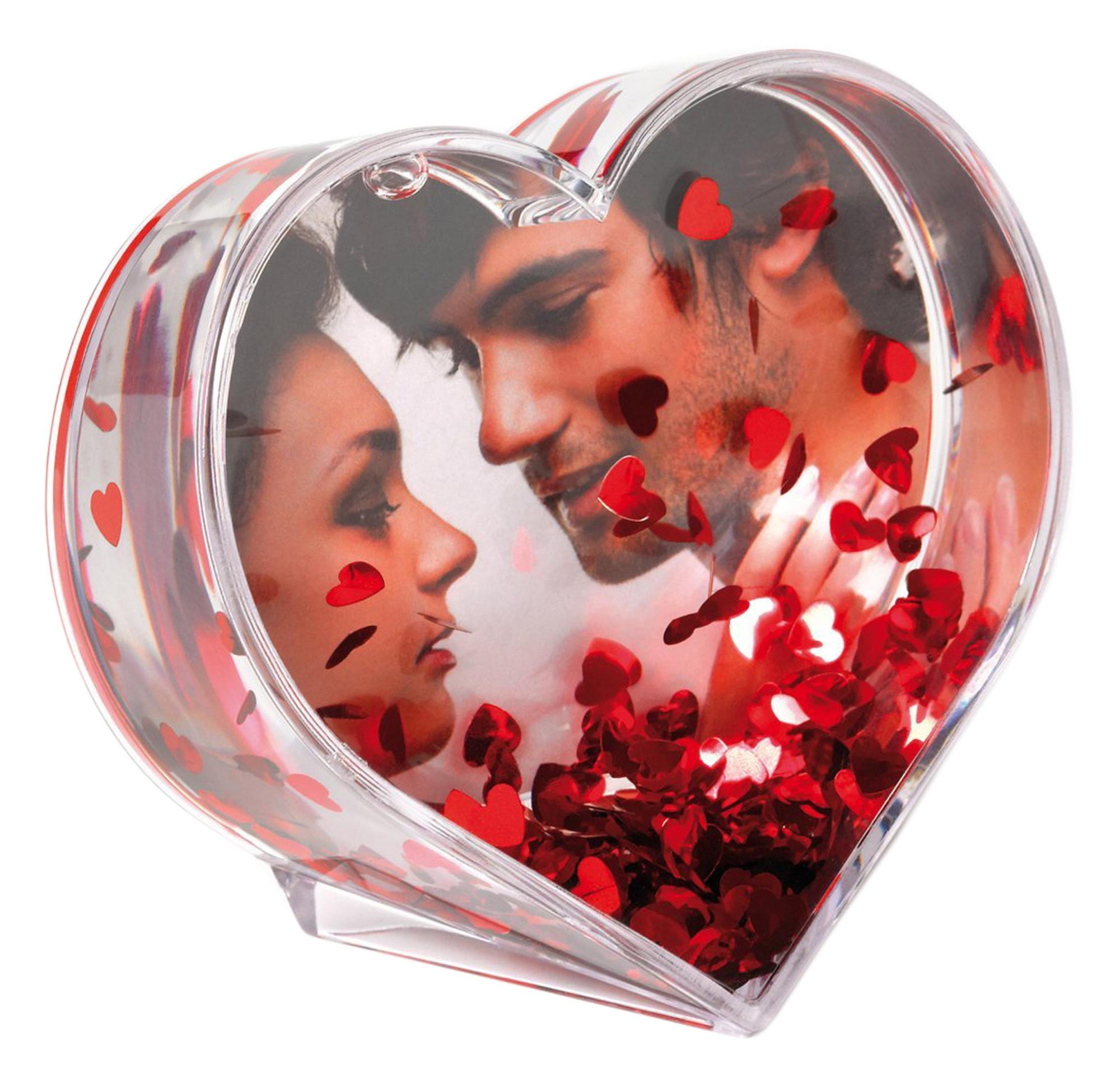 Ta ramka na zdjęcia w kształcie serca nadaje twoim zdjęciom bardzo romantyczną oprawę. Ramka wykonana jest z wytrzymałego tworzywa akrylowego i wypełniona czerwonymi metalowymi sercami, co tworzy efekt podobny do "śnieżnej kuli". Ramka na zdjęcia pomieści 1 zdjęcie o wymiarach 9,1x6,5 cm.