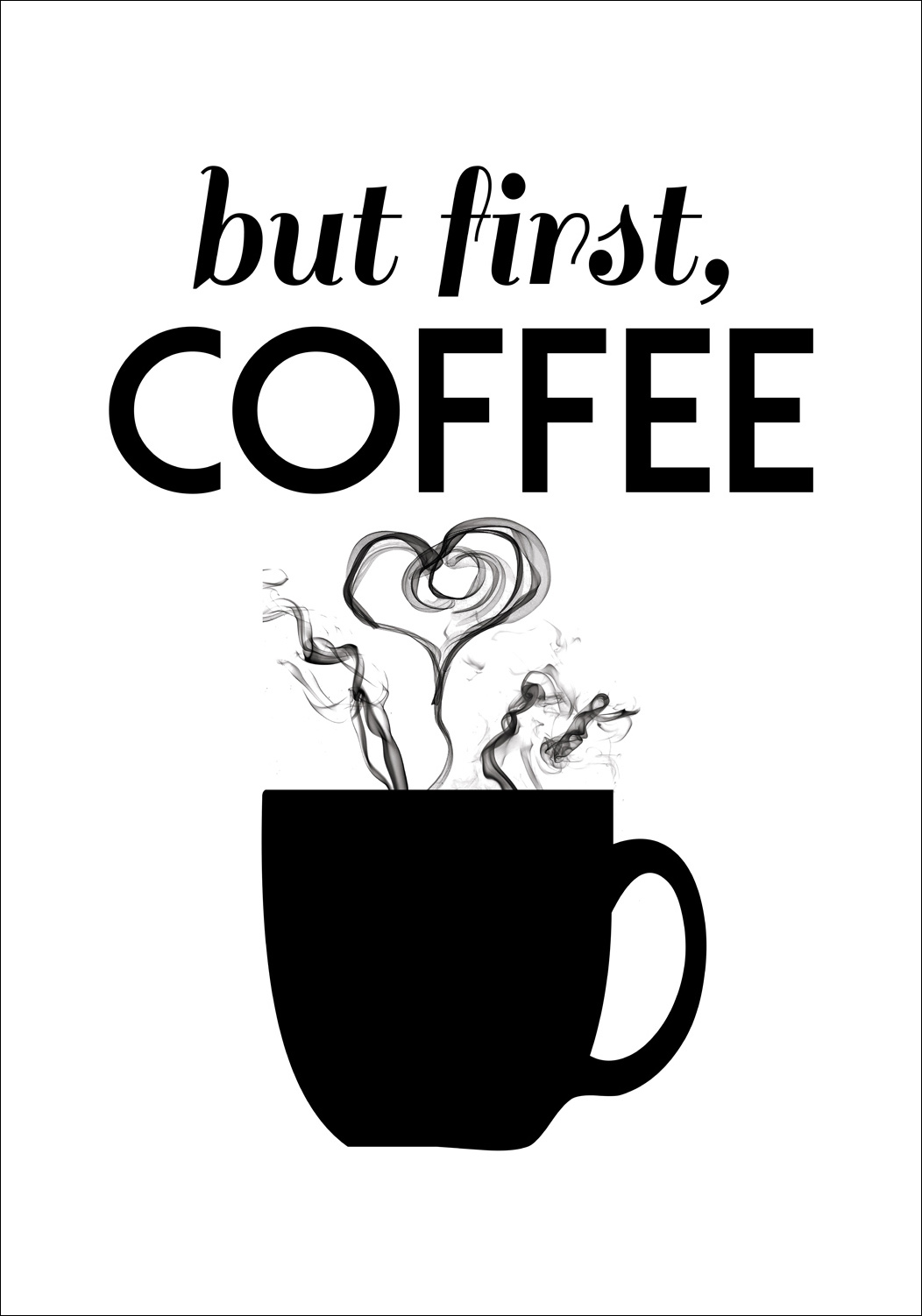 Czy wszystko nie staje się trochę lepsze po filiżance kawy? Stylowy plakat dla miłośnika kawy, który chce mieć swój ulubiony napój również na ścianie. Doskonale pasuje także do powieszenia w pokoju socjalnym w miejscu pracy, aby pokazać, gdzie powinien stać kubek z kawą, że tak powiem. Czarnobiały graficzny nadruk sprawdzi się w każdej przestrzeni, gdzie serwowana jest kawa i pasuje do wszystkich stylów wnętrz. Wybierz prostą czarną lub białą ramę, aby podkreślić motyw, lub taką, która przypomina te, które już są na ścianach, aby dobrze wpasowała się w całość otoczenia.