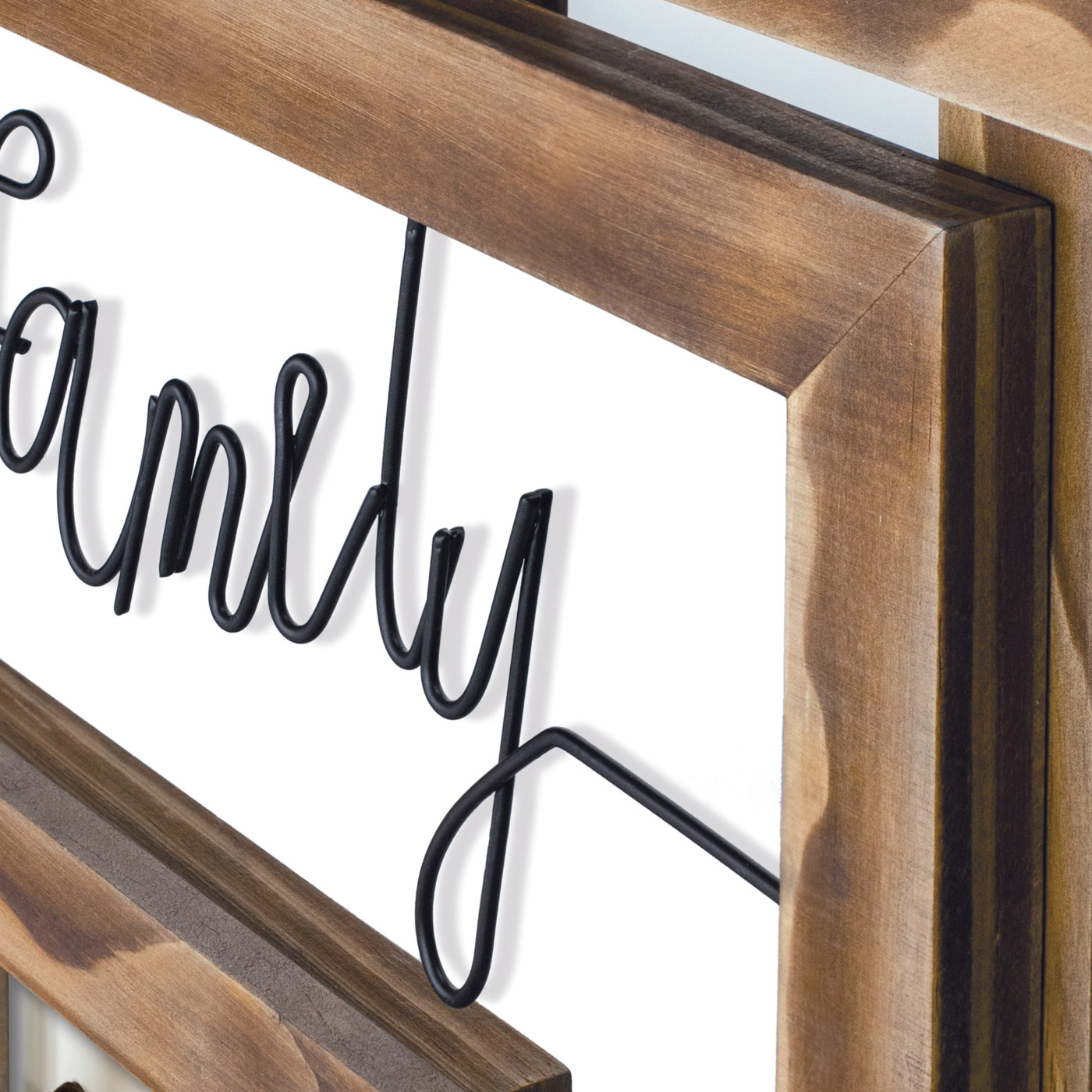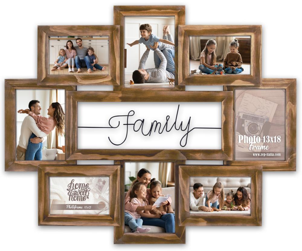 Ta piękna ramka kolażowa jest idealna do uchwycenia najlepszych wspomnień z rodziną i oprawienia ich! Ramka kolażowa jest w ciepłym odcieniu drewna w kolorze brązowym, a w środku między ramkami znajduje się słowo „rodzina” w czarnych literach. Ramka mieści 8 zdjęć w rozmiarze 10x15 cm i 13x18 cm. Znajduje się uchwyt na ścianę.