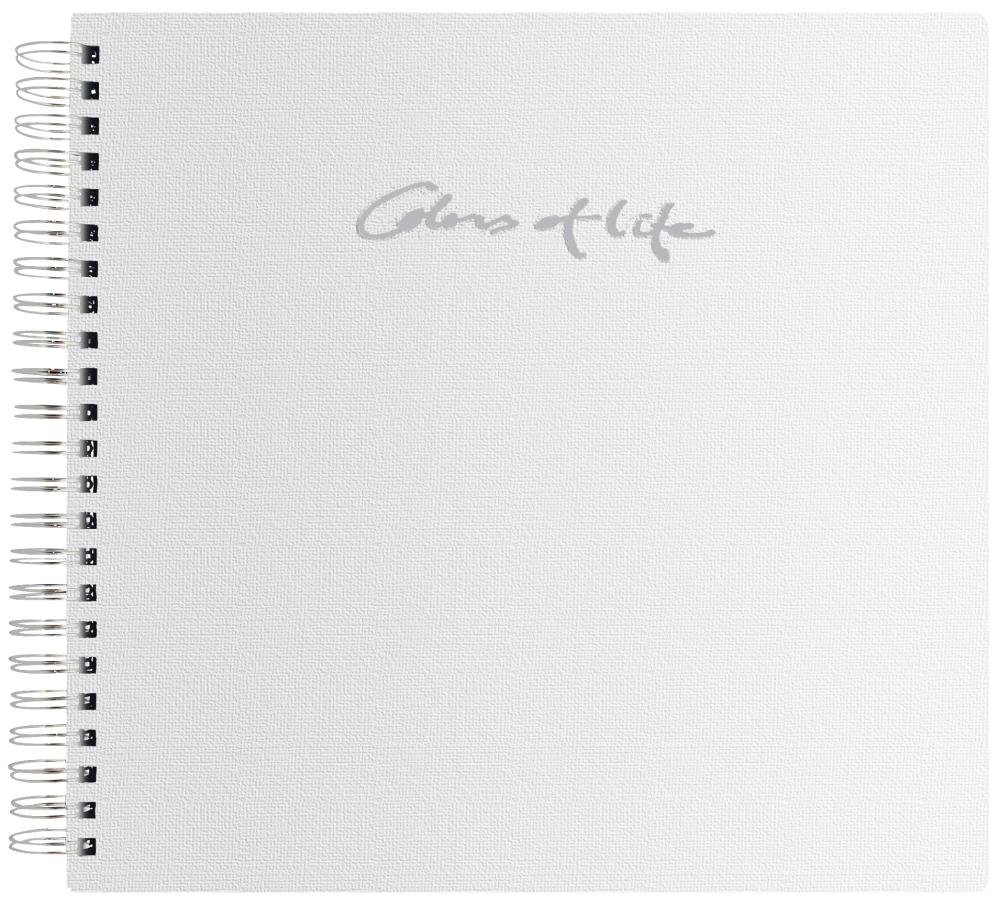 Album spiralny 30x30 cm z 24 bezkwasowymi białymi kartkami, gotowy do wypełnienia wspomnieniami! Na przedniej stronie albumu znajduje się tekst "Colors of life" w kolorze srebrnym.