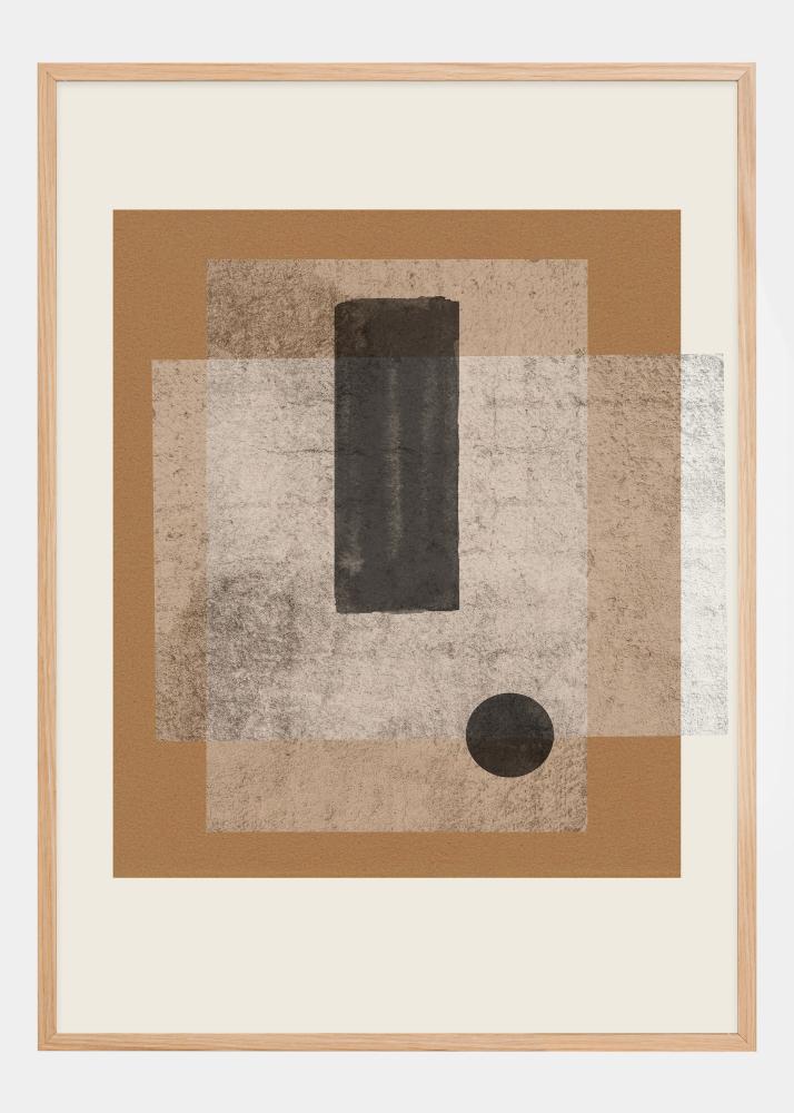 Ten plakat jest hołdem dla mistrza sztuki abstrakcyjnej, którego prace bawiły się formą i teksturą, aby stworzyć równowagę i głębię. Nakładające się prostokąty w odcieniach brązu, czerni i szarości tworzą poczucie przestrzeni i wymiaru, podczas gdy samotne koło dodaje subtelną, ale potężną dynamikę kompozycji.