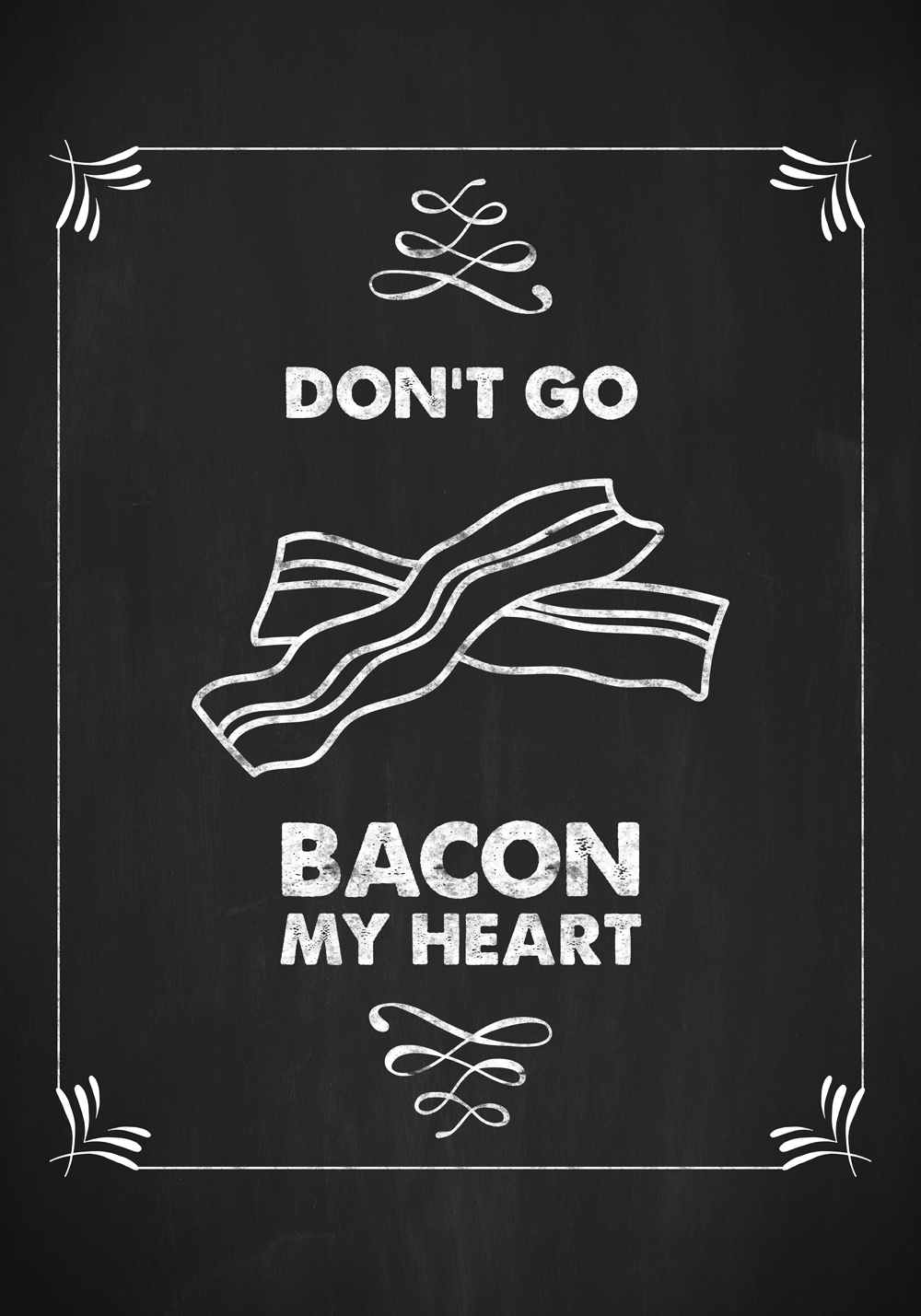 Ostateczny romantyczny plakat do podarowania dla miłośnika jedzenia, który ma poczucie humoru. Graficzny nadruk przypomina szkolną tablicę i dobrze pasuje zarówno do wiejskiej kuchni, jak i nowoczesnej, minimalistycznej kuchni. Najlepiej prezentuje się na ścianie z innymi plakatami o tematyce kulinarnej lub błyskotliwymi cytatami ze świata jedzenia. Uzupełnij nadruk ramką na plakat w kolorze czarnym lub białym, która nie konkuruje z motywem i pozwala tekstowi mówić za siebie.