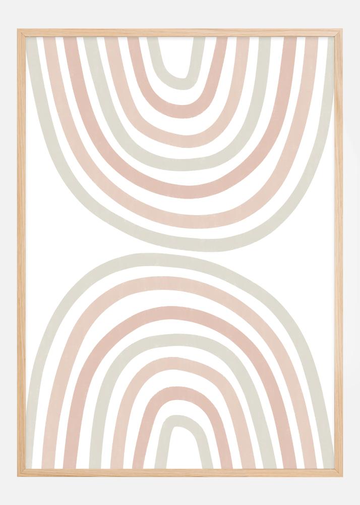 Ten nowoczesny i minimalistyczny plakat, zatytułowany "Double Rainbow", przedstawia serię koncentrycznych łuków tworzących podwójną tęczę z spokojną i relaksującą paletą kolorów. Miękkie odcienie niebieskiego, beżu i terakoty są idealnie zbalansowane, aby stworzyć poczucie harmonii i spokoju w Twojej przestrzeni. Czyste linie i prosty design czynią ten druk stylowym dodatkiem do każdego nowoczesnego wystroju wnętrza.