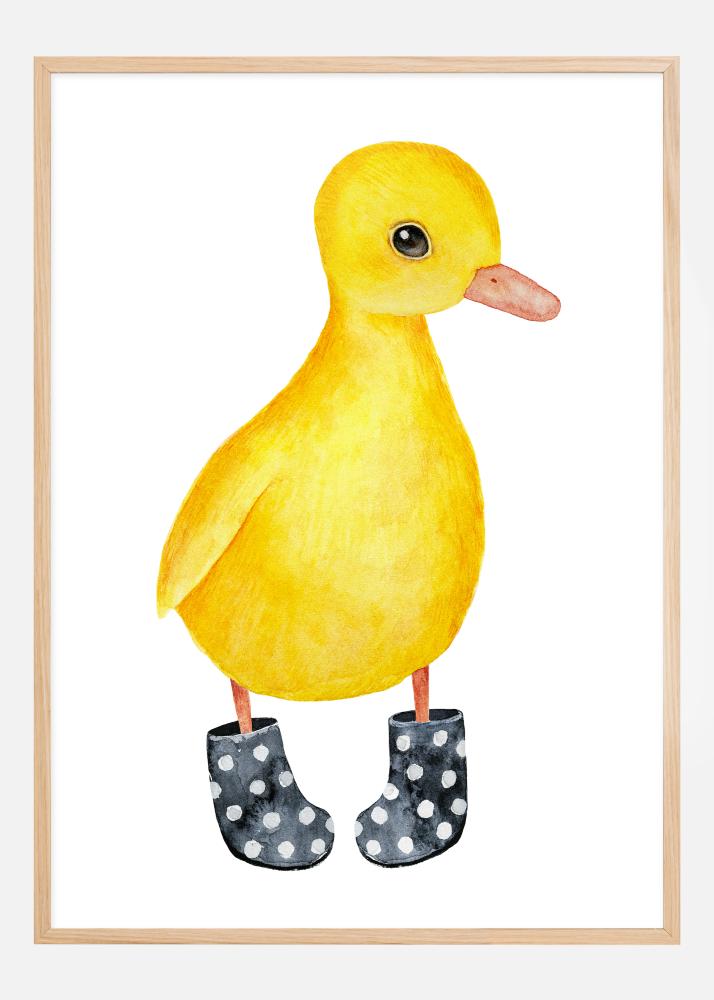 Odkryj urok naszej słonecznej kaczki na plakacie, która roztacza radość i gra na strunach przewrotności. Ta urocza ilustracja przedstawia słodką, żółto upierzoną kaczątkę ubraną w parę w kropki kaloszy - obraz, który z pewnością wywoła uśmiechy. To zabawny nadruk, który doskonale pasuje do pokoju dziecięcego lub jako jasny i radosny akcent w każdym domu, dodając poczucia przyjemności i niewinnej żądzy przygód.