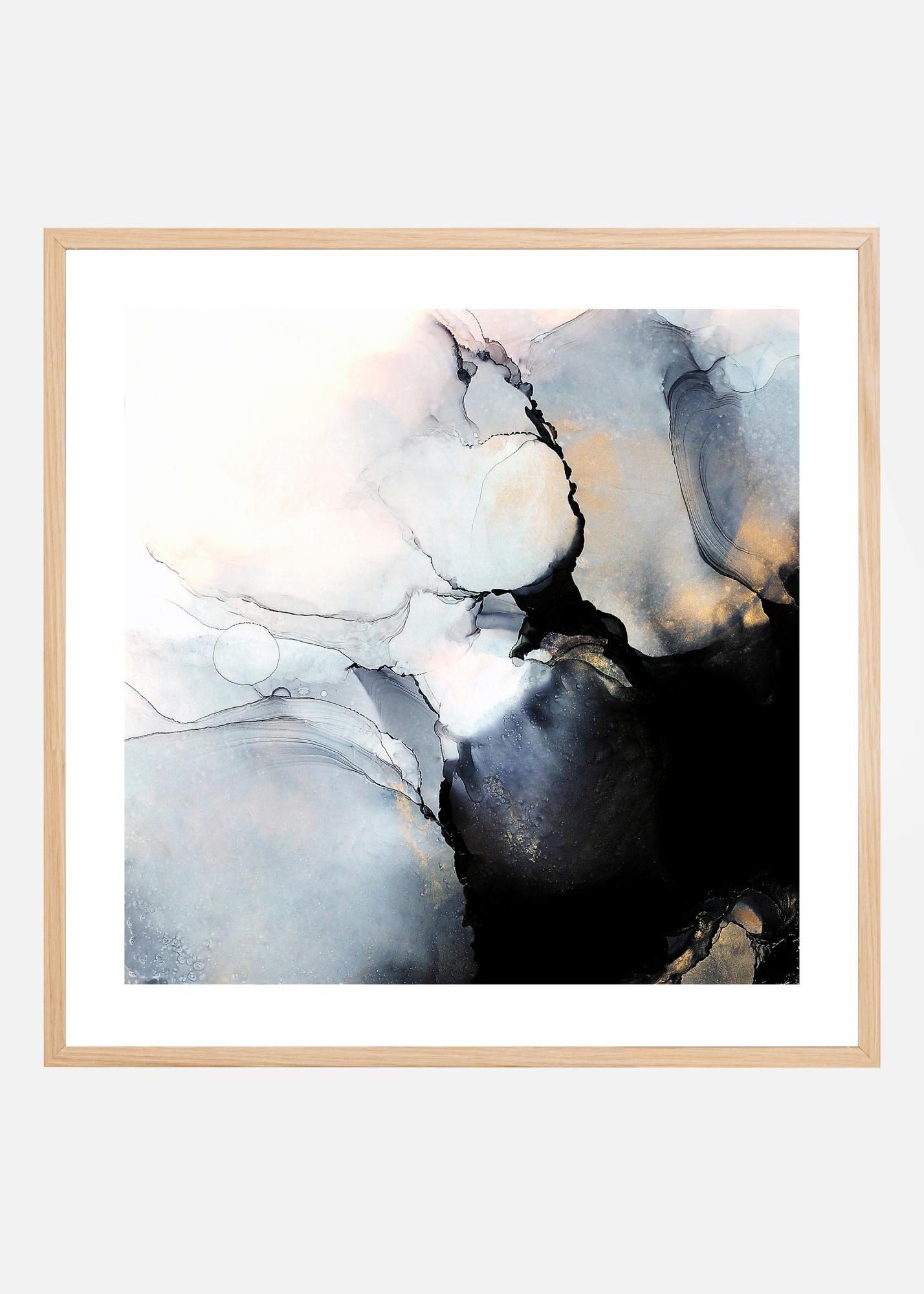 Wspaniały abstrakcyjny plakat artystyczny w akwarelach, w odcieniach czerni, niebieskiego i złota z delikatnymi akcentami różu, stworzony przez artystkę Gabriellę Roberg. Plakat doskonale komponuje się z dziełem Gabrielli DAWN.