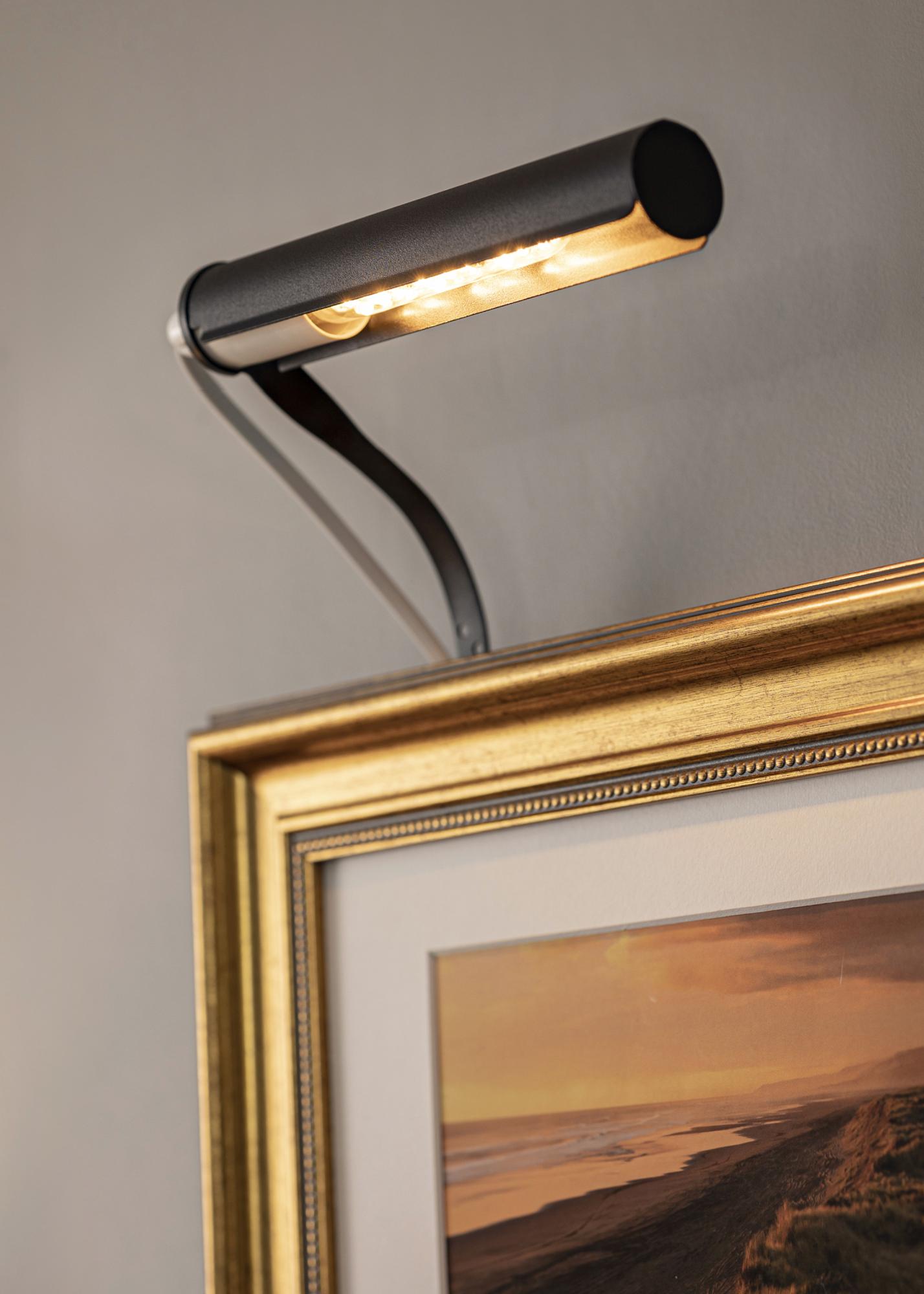 Zazwyczaj mocujesz oświetlenie obrazowe na tylnej części ramy, wadą tego jest to, że wymaga to drewnianej ramy (niektóre ramy kompozytowe również się nadają), która ma szeroki profil, aby można było przykręcić do ramy. Dzięki naszemu uchwytowi ściennemu nie musisz się o to martwić, po prostu montujesz swoje oświetlenie bezpośrednio na ścianie za obrazem.