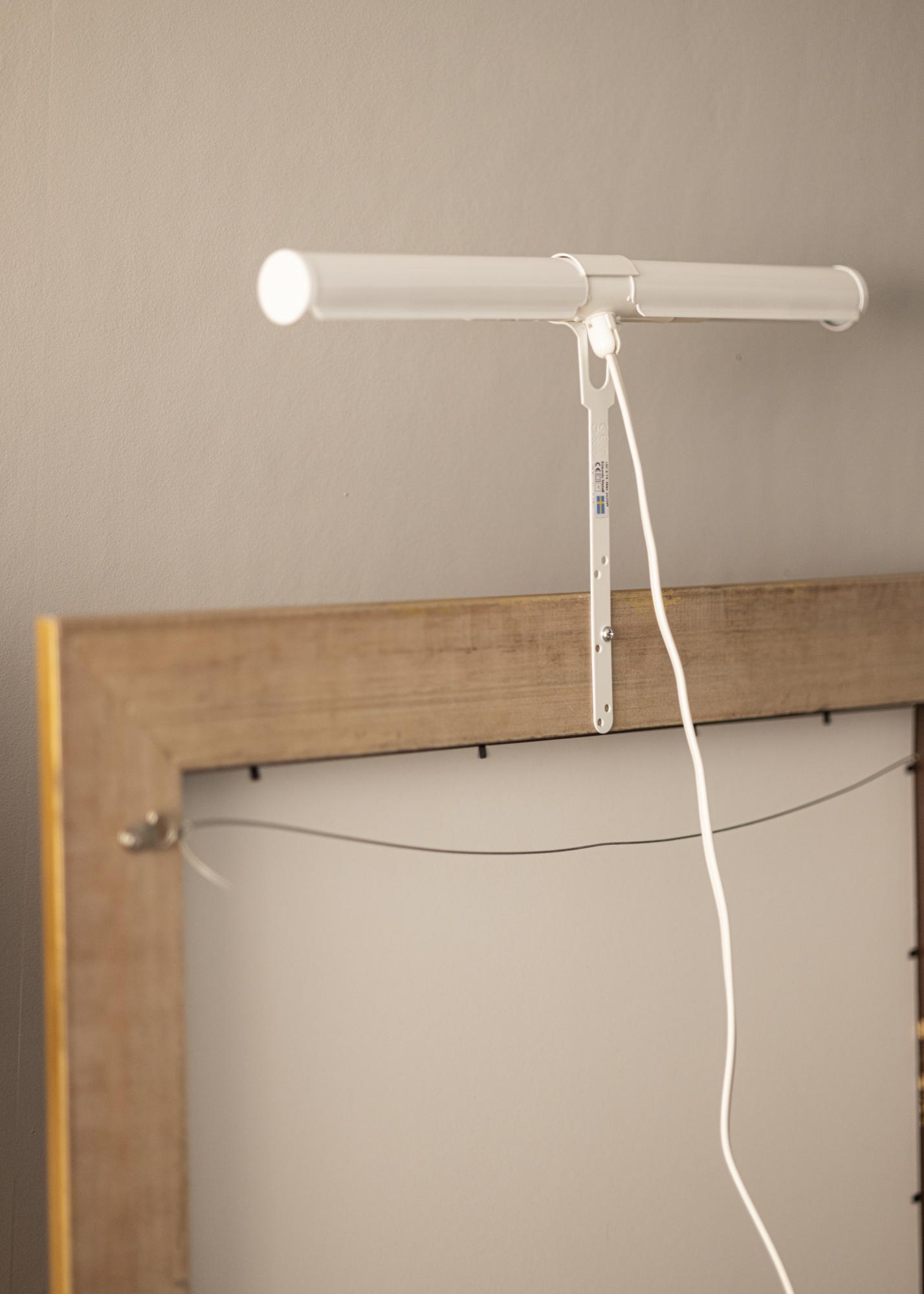 Oświetlenie obrazów ma stylowy biały odcień i neutralny biały kabel.