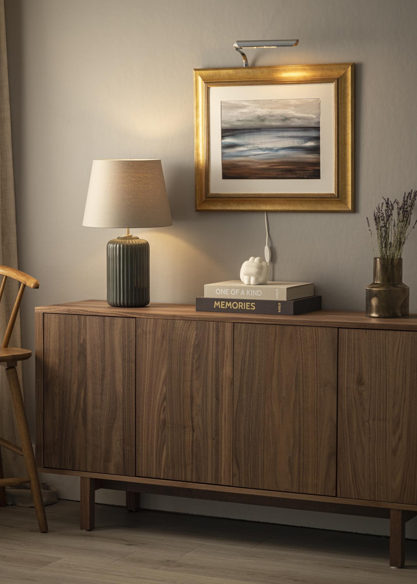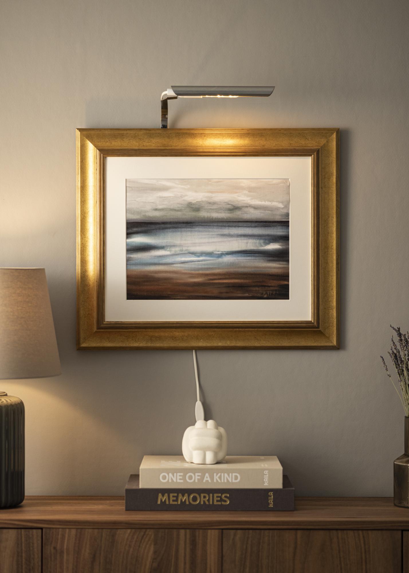 Stylowe oświetlenie do obrazu, które zostało zaprojektowane i wyprodukowane w Szwecji. Doskonały dodatek do zdjęć, które szczególnie lubisz i na których chcesz skupić uwagę. To wspaniały element dekoracyjny, który podkreśla twoje zdjęcia!