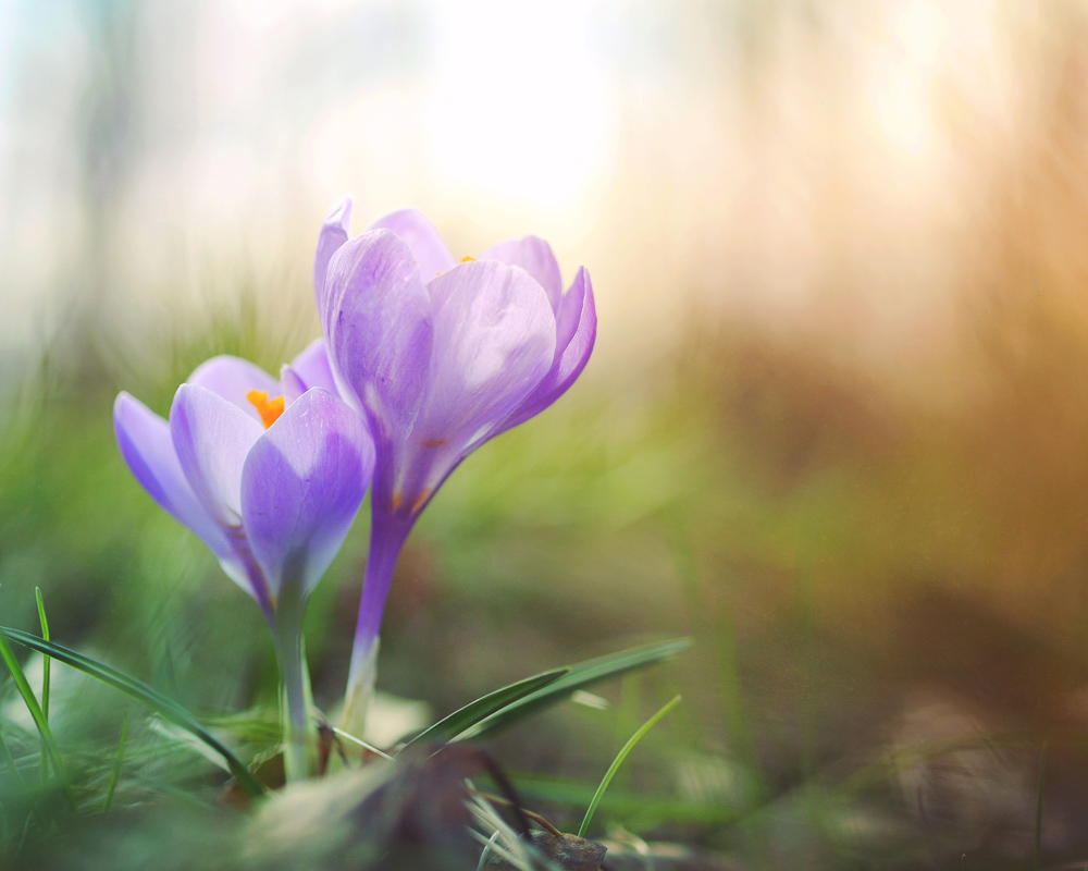 Urocze zdjęcie być może najbardziej kolorowego wielbiciela słońca wiosny, krokusa. Rozmyte tło w kolorze uzupełniającym podkreśla kwiaty i wprowadza harmonię do fotografii. Idealne dla tych, którzy chcą wnieść radość kolorów do domu, a także zawsze dobrze jest użyć odcienia z obrazu jako koloru akcentowego w reszcie wystroju. Warto połączyć z innymi motywami roślinnymi, aby stworzyć spójne wrażenie w pomieszczeniu.