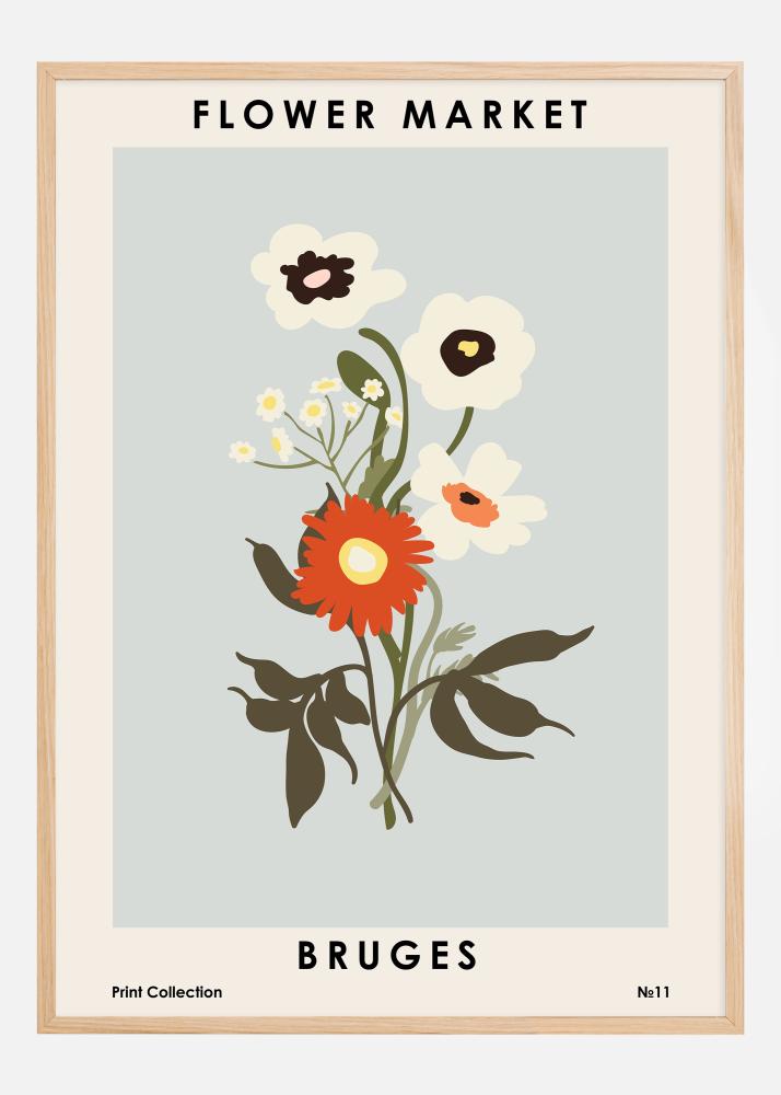 Ten uroczy plakat z naszej kolekcji 'Flower Market' przedstawia unikalny wybór kwiatów, który uchwyca istotę malowniczej i historycznej atmosfery Brugii. Z zachwycającym zestawieniem kwiatów w odcieniach słonecznej żółci, głębokiej pomarańczy i miękkiej bieli na stonowanym szaroniebieskim tle, ten wydruk oferuje estetyczną radość, przywodząc na myśl spokojne i kolorowe targi kwiatowe w Belgii.