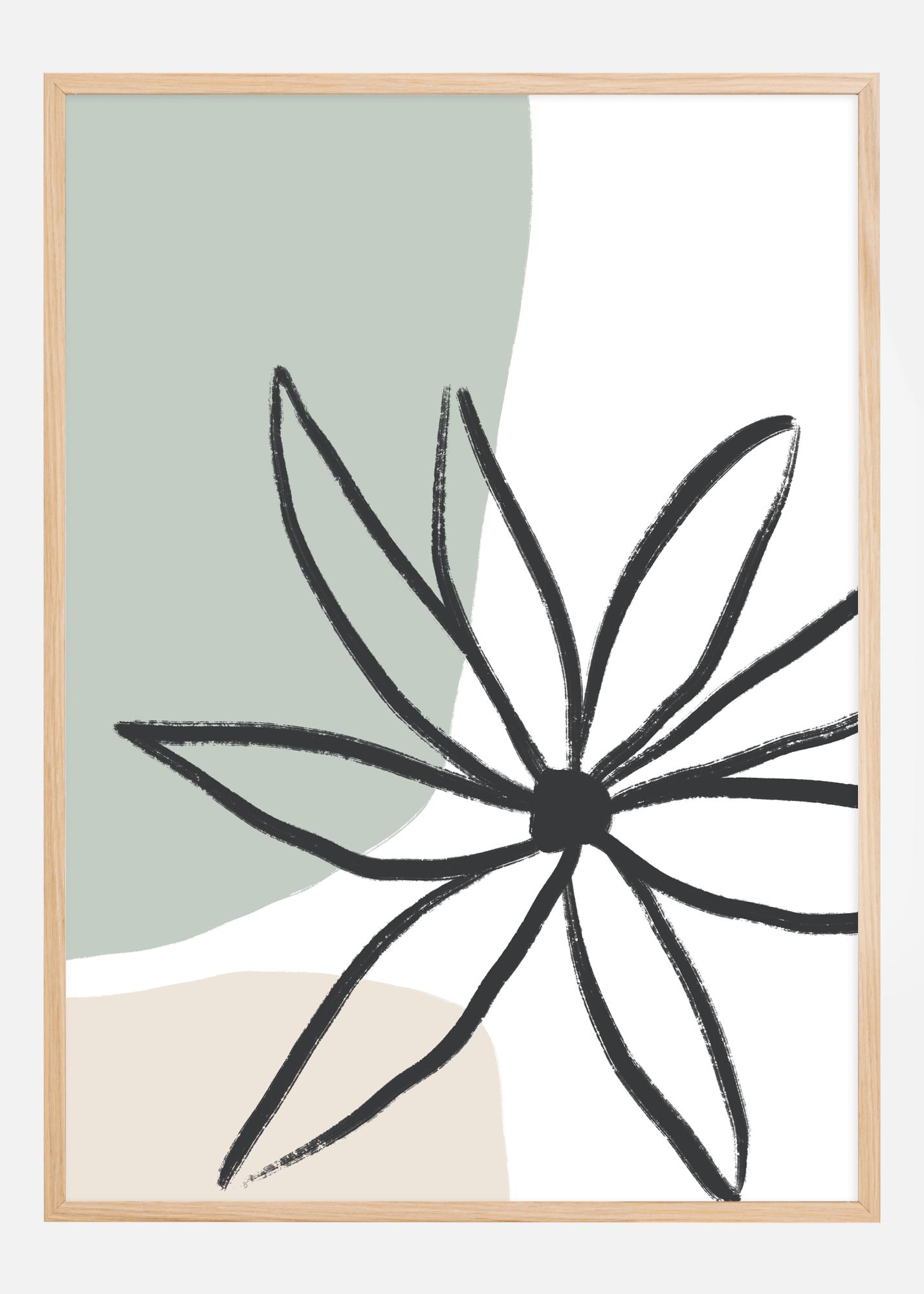 Ten plakat, "Flower Mint and Cream", emanuje prostotą, która jest zarówno współczesna, jak i ponadczasowo elegancka. Jego motyw przedstawia stylizowany kwiat w mocnych czarnych pociągnięciach pędzla na kojącym tle miętowej zieleni, tworząc kontrast, który jest zarówno odważny, jak i zrównoważony. Kremowy, neutralny odcień wypełniający dolną połowę obrazu zapewnia miękki kontrast, który uzupełnia minimalistyczny projekt.