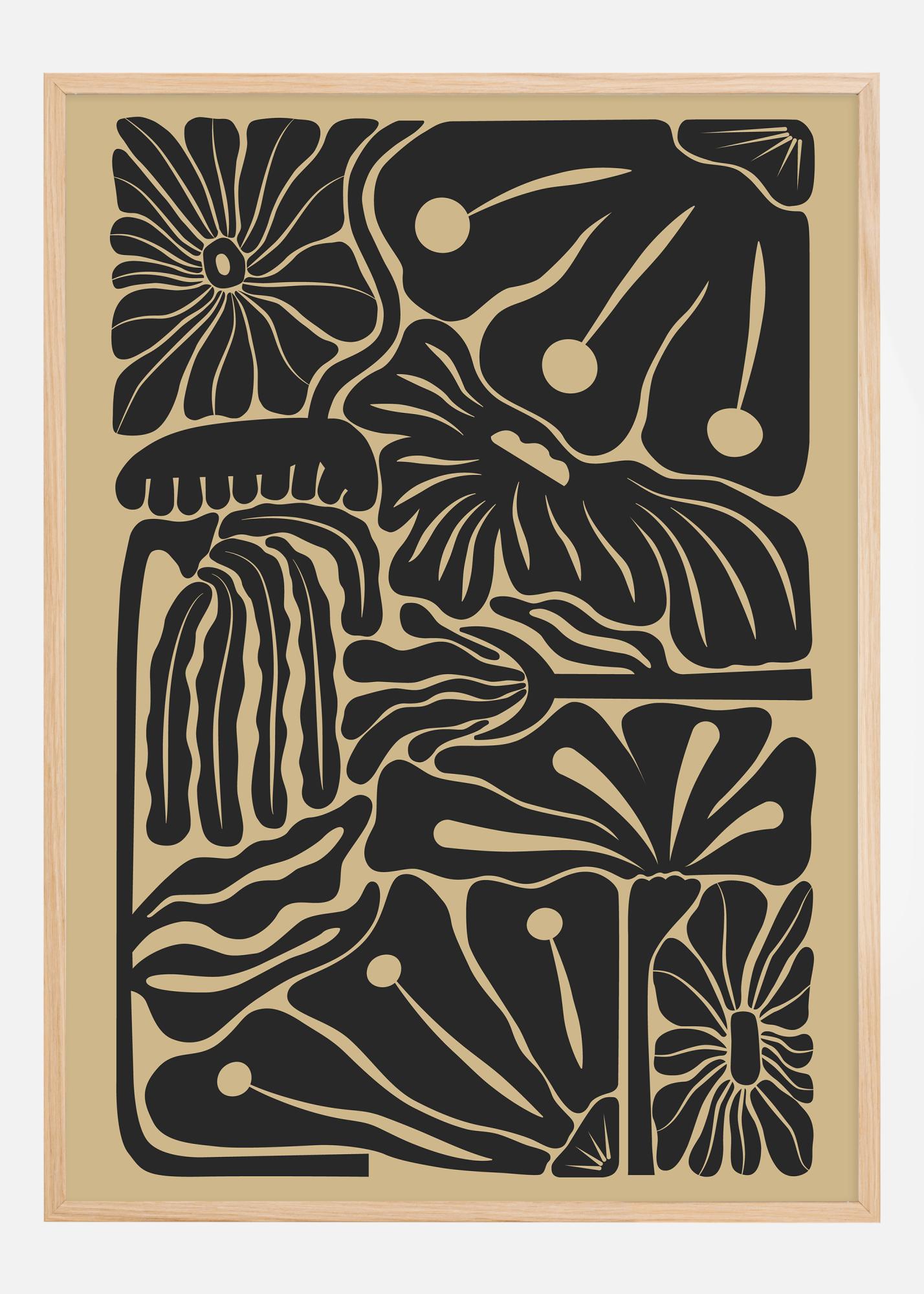 Ten elegancki plakat tworzy nowoczesne i eleganckie wrażenie, idealne dla świadomego trendów dekoratora wnętrz. Motyw przedstawia serię abstrakcyjnych form i linii przypominających kwiaty i liście w organicznym wzorze. Monochromatyczne wykonanie w odważnych czarnych detalach na beżowym tle tworzy silny wizualny kontrast, który przyciąga wzrok. Dzieło, które doskonale pasuje do minimalistycznego lub skandynawskiego stylu wnętrz i dodaje poczucie natury, nie zajmując zbyt wiele wizualnej przestrzeni.
