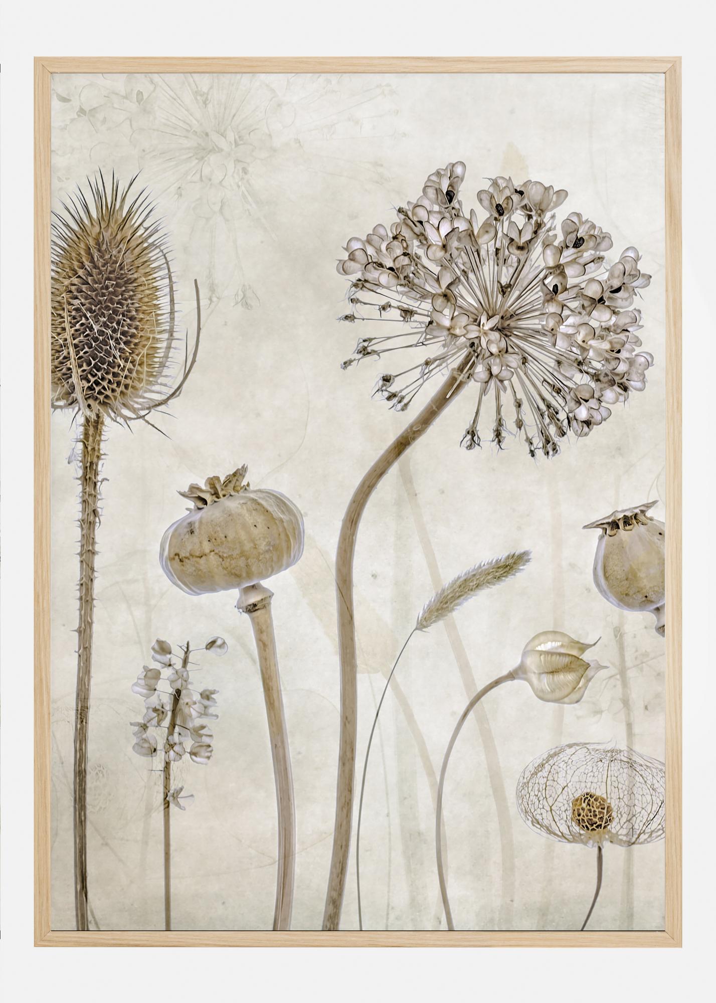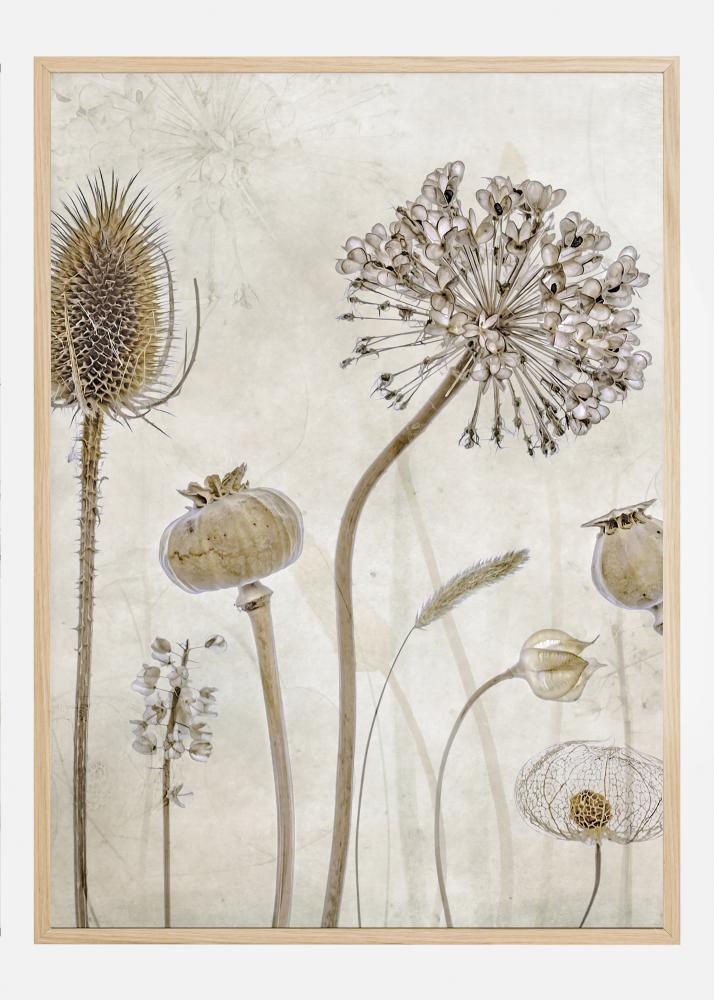 Elegancki plakat z suszoną trawą, która stoi wysoko. Delikatne beżowe kolory tworzą poczucie spokoju i ciepła. Suszona trawa, która dmucha na wietrze, przyczynia się do poczucia spokoju w tym portrecie. Powieś ten prosty, ale delikatny obraz w swojej kuchni, aby stworzyć to naturalne poczucie życia.