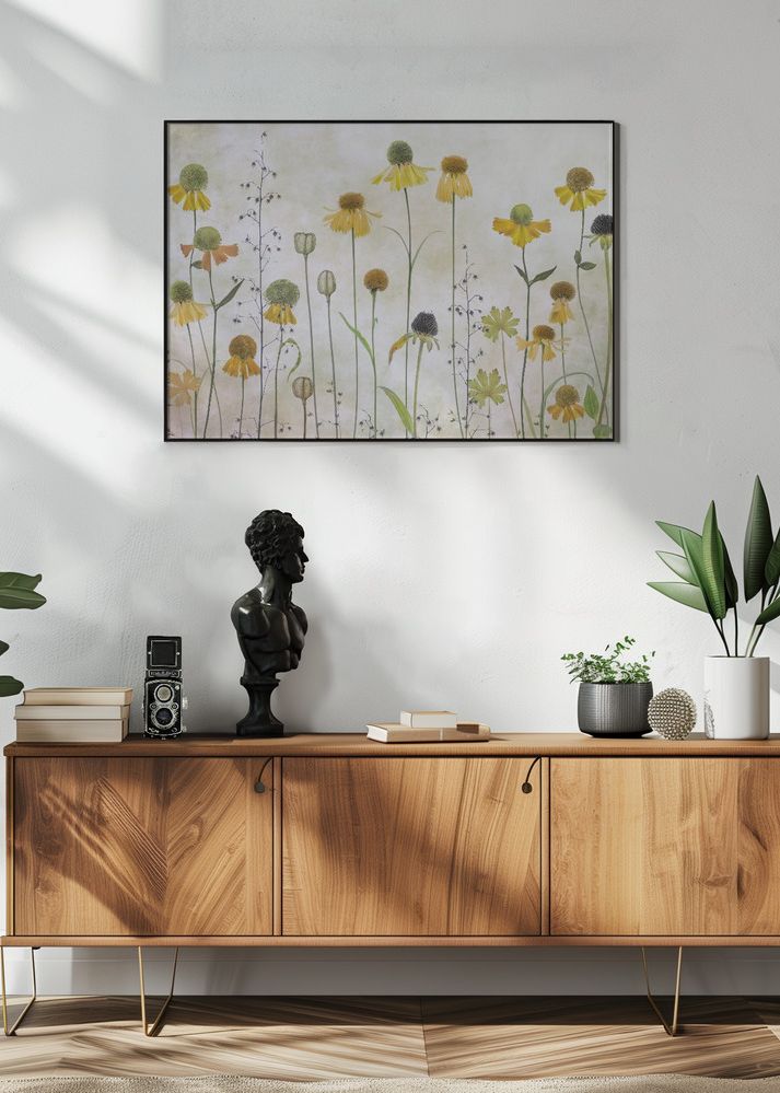 Ten print ma delikatną paletę kolorów z odcieniami Żółty, Zielony oraz subtelnymi akcentami beżu i Biały. Subtelna gra tych barw sprawia, że motyw jest jednocześnie żywy i harmonijny, dzięki czemu stanowi stylowy dodatek do każdego wnętrza. Niezależnie od tego, czy szukasz plakatu do salonu, czy printu do sypialni, ten wzór przypadnie do gustu miłośnikom natury i entuzjastom designu.