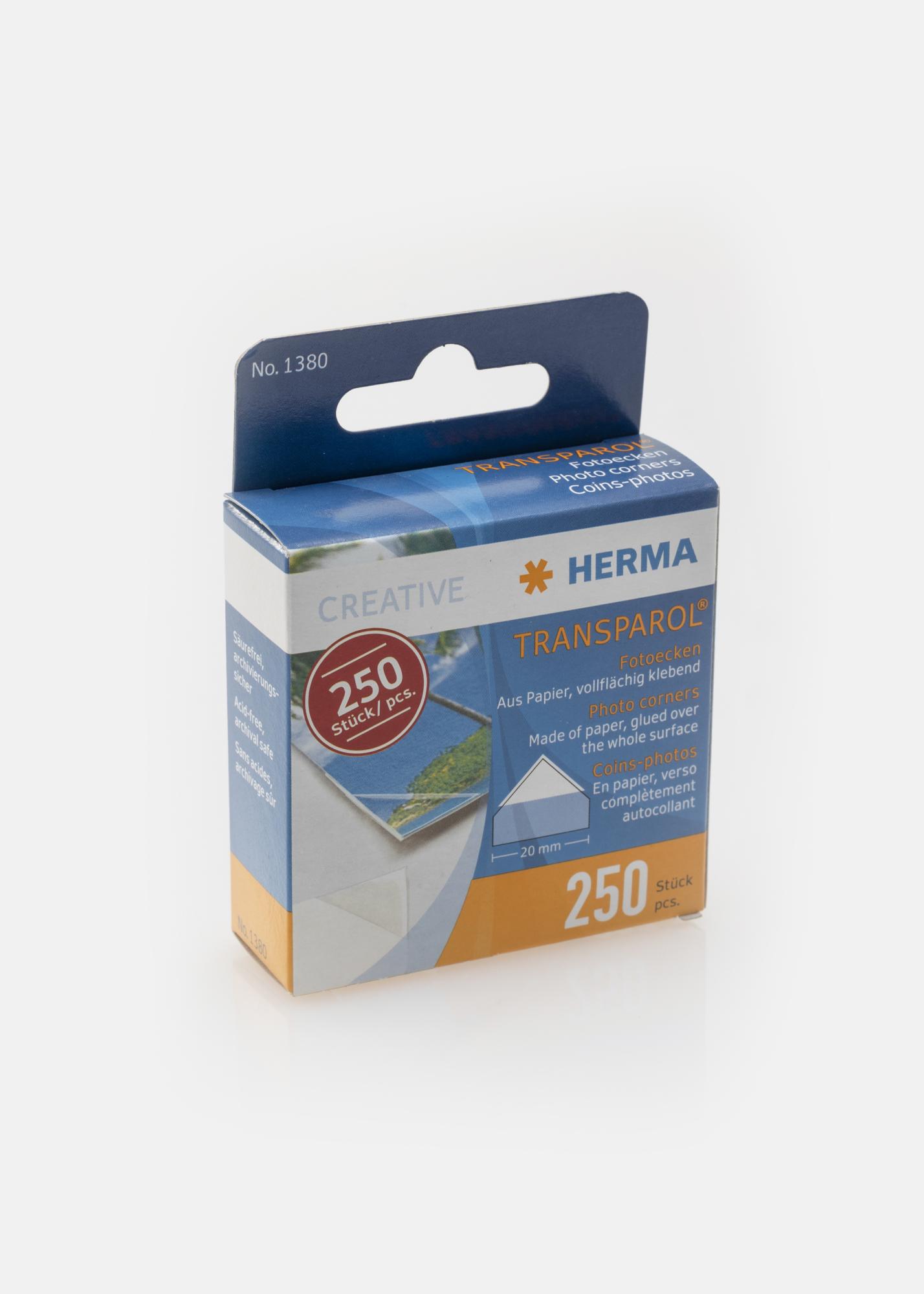 Samoprzylepne przezroczyste narożniki do zdjęć od Herma. Każde opakowanie zawiera 250 narożników. Używane m.in. do montażu zdjęć w albumach fotograficznych. Każdy narożnik ma szerokość 20 mm.