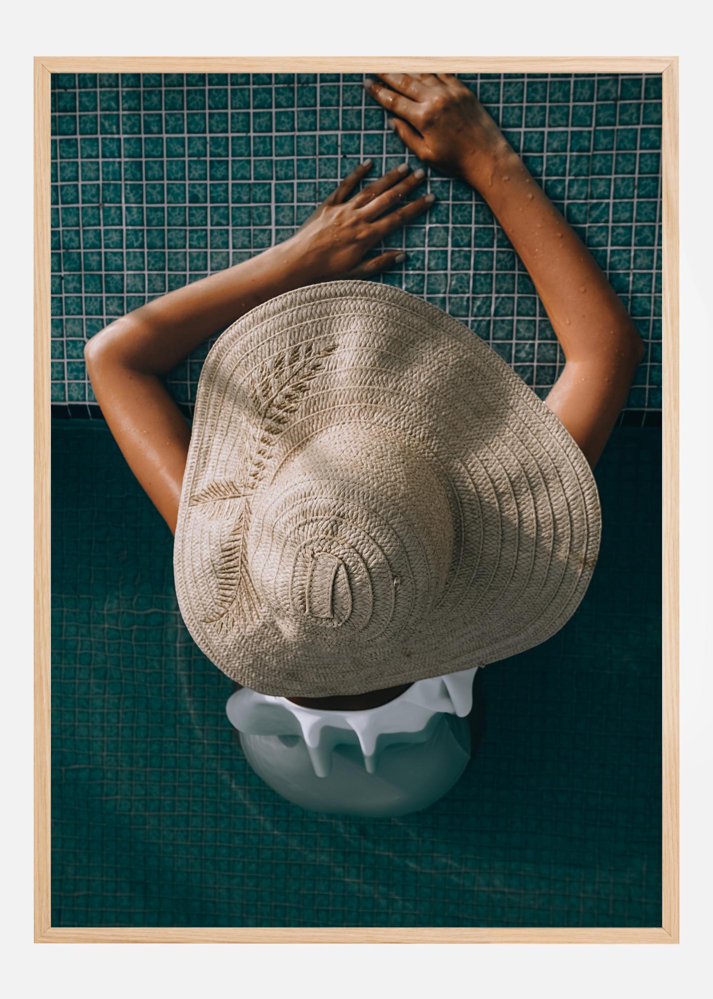 Detale kapelusza i lustrzana powierzchnia wody, razem z miękkimi cieniami i słonecznym nastrojem, przywołują poczucie leniwych letnich dni i długich, przyjemnych chwil wakacyjnych. To idealny plakat do łazienki, przestrzeni w stylu spa, lub gdziekolwiek indziej, gdzie chcesz dodać poczucie relaksu i ucieczki od codzienności.