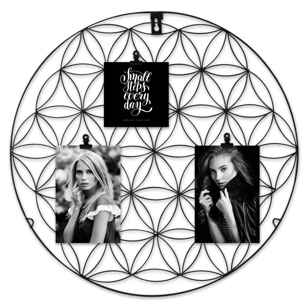 To jest fajna okrągła ramka z czarnego metalu. Ramka na kolaż ma średnicę 50 cm, a zdjęcia mocuje się za pomocą klipsów na tle z dekoracyjnym wzorem. Ponieważ zdjęcia mocuje się klipsami, można wybrać zdjęcia w różnych rozmiarach, aby stworzyć stylowy i nieco dynamiczny efekt. Tę okrągłą ramkę na kolaż z metalu można elegancko umieścić w domu jako piękny punkt centralny lub podarować jako ładny prezent komuś!
