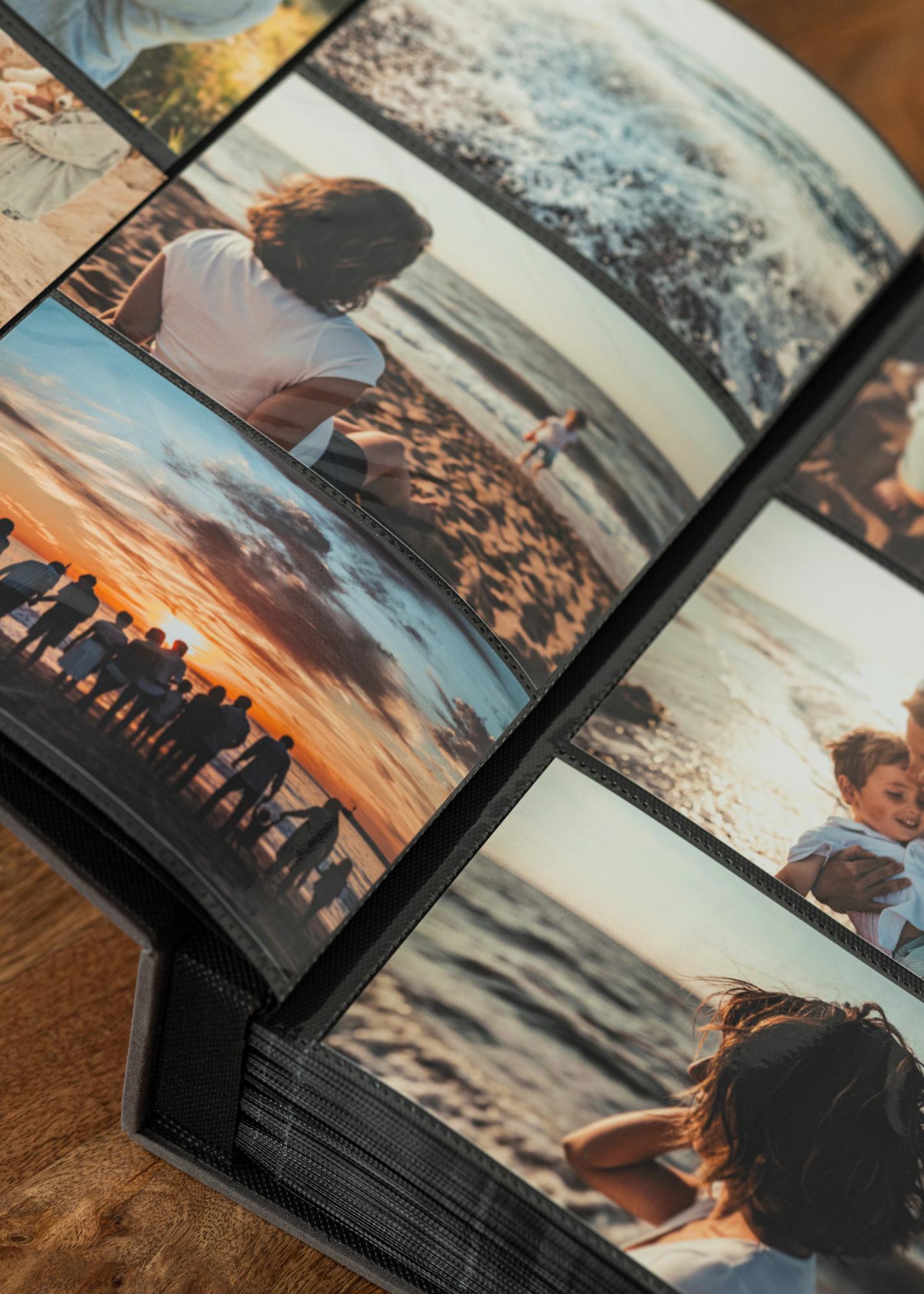 Album ma 200 stron, co odpowiada 100 arkuszom, i jest wyposażony w praktyczne kieszonki na zdjęcia, które ułatwiają montaż zdjęć bez kleju czy narożników. Czarne strony tworzą piękny kontrast z Twoimi fotografiami i podkreślają ich kolory w gustowny sposób.