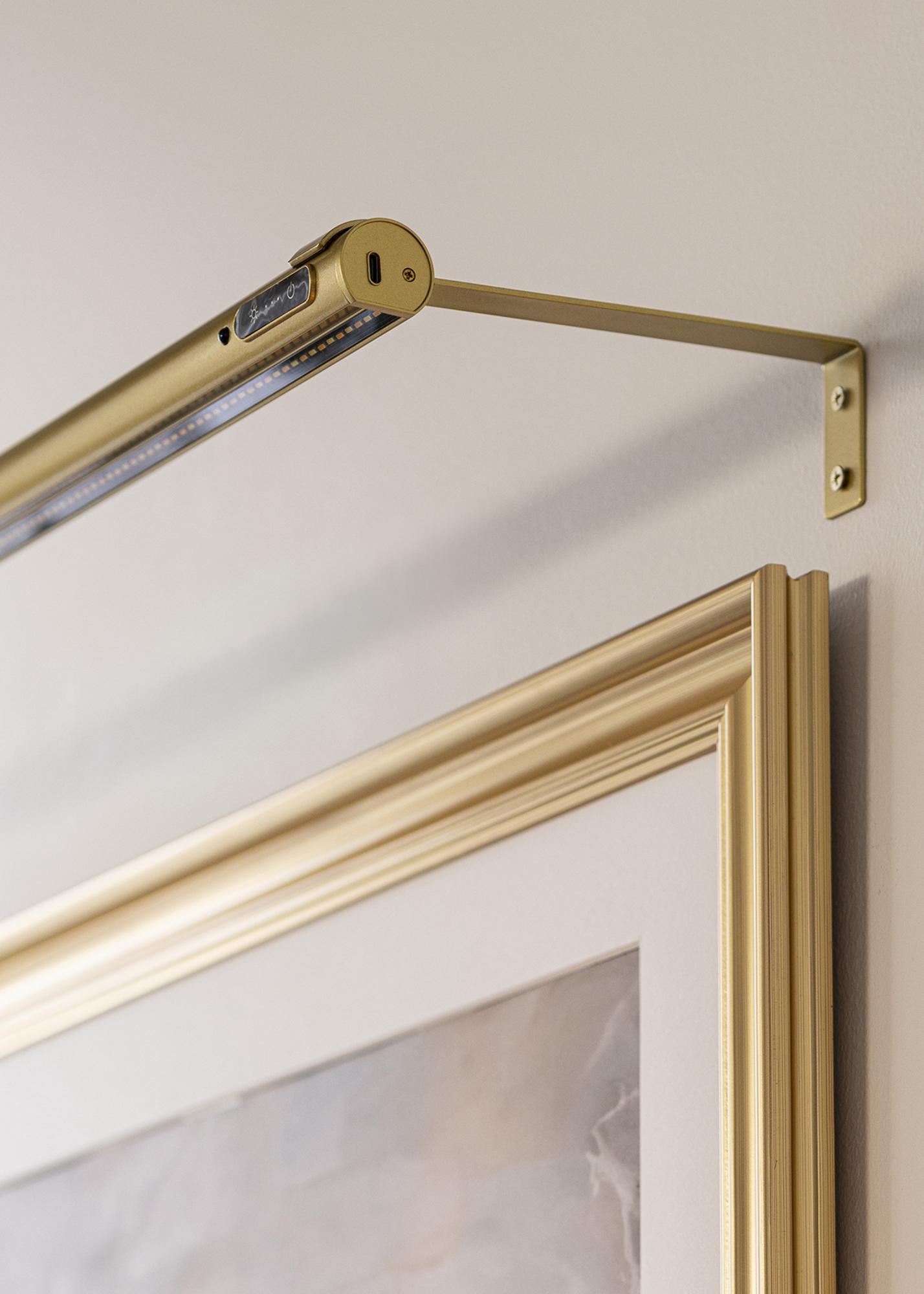 Podkreśl swoje dzieła sztuki za pomocą KAILA Brilliance – eleganckiego i zasilanego na baterie oświetlenia obrazów, które zapewnia idealne oświetlenie bez kabli! Dzięki swojej bezprzewodowej konstrukcji można go łatwo umieścić w dowolnym miejscu, nie martwiąc się o gniazdka elektryczne. Dzięki eleganckiemu złotemu wykończeniu i regulowanemu ramieniu rozprasza miękkie i równomierne światło nad twoim obrazem, pięknie podkreślając detale i kolory. Łatwy montaż i wygodne użycie sprawiają, że to oświetlenie obrazów to doskonały wybór zarówno do domu, jak i galerii.