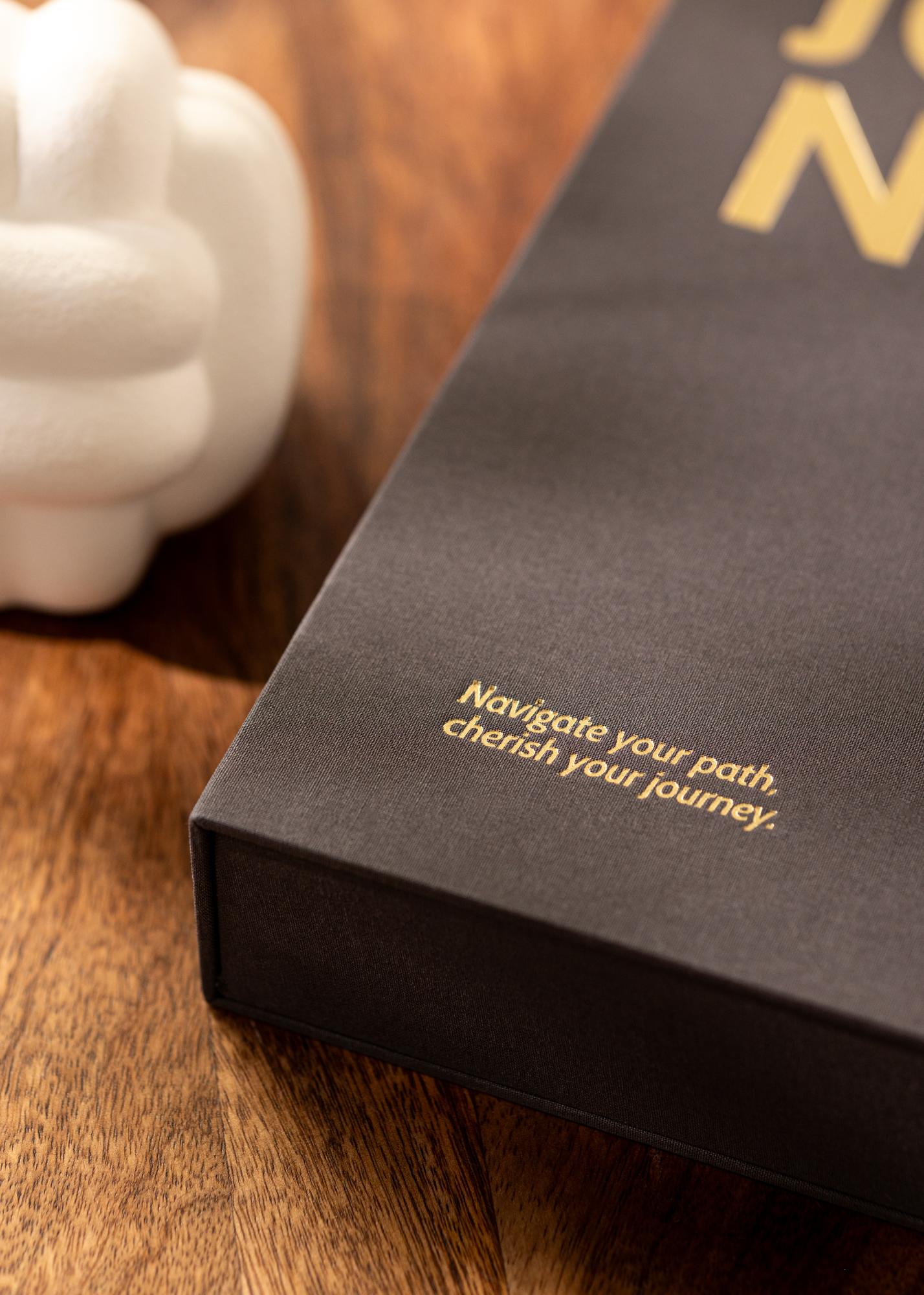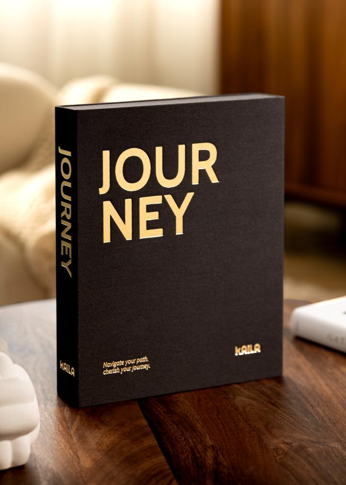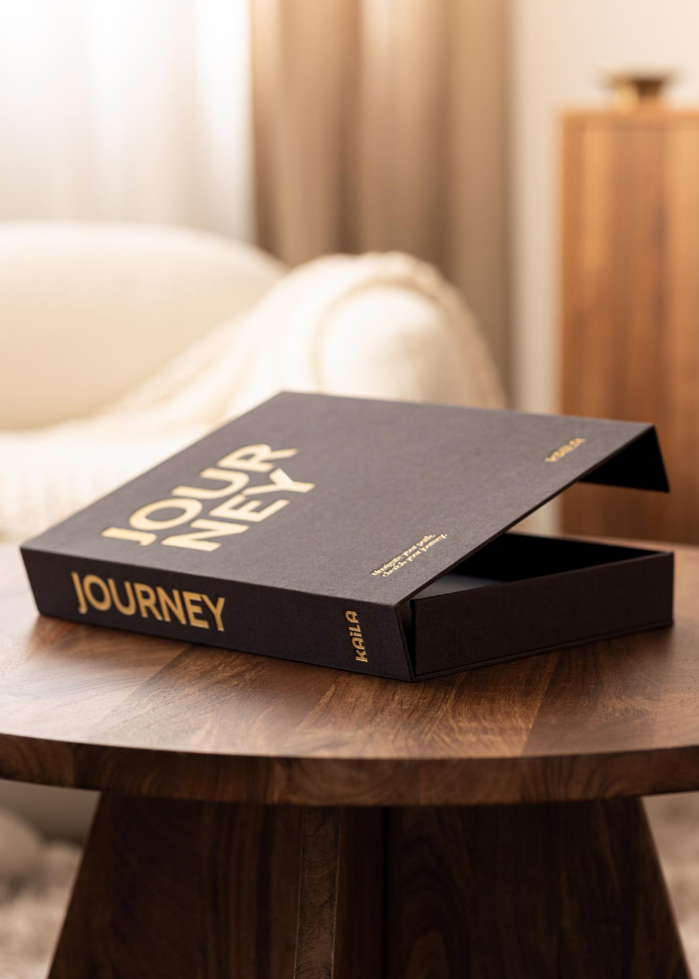 Odkryj KAILA JOURNEY Black - elegancki i stylowy album na zdjęcia, zaprojektowany jako piękny element dekoracyjny w Twoim domu. Z beżowymi okładkami i czarnymi stronami, ten album staje się idealną Coffee Table Book, którą możesz dumnie prezentować.