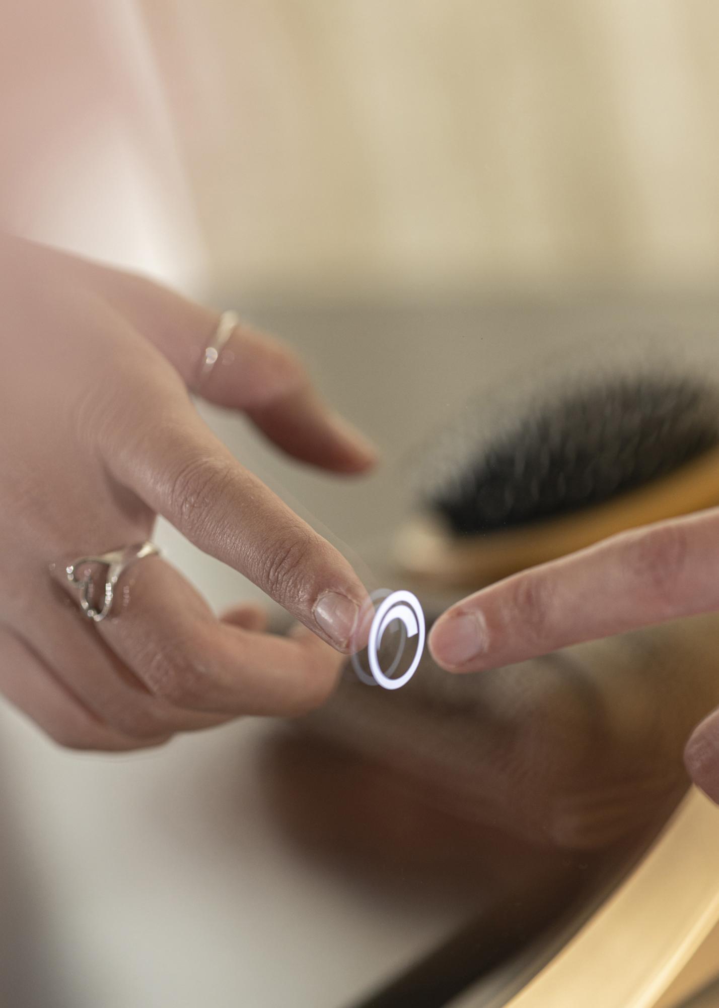 Światło ma przyjemny blask, który można łatwo przyciemnić. Aby dostosować jasność, należy przytrzymać przycisk dotykowy na dolnej krawędzi lustra przez kilka sekund. Lustro przeznaczone jest do stałej instalacji i powinno być montowane przez elektryka. Aby lustro działało prawidłowo, powinno być podłączone do zwykłego przełącznika, a nie do ściemniacza.
