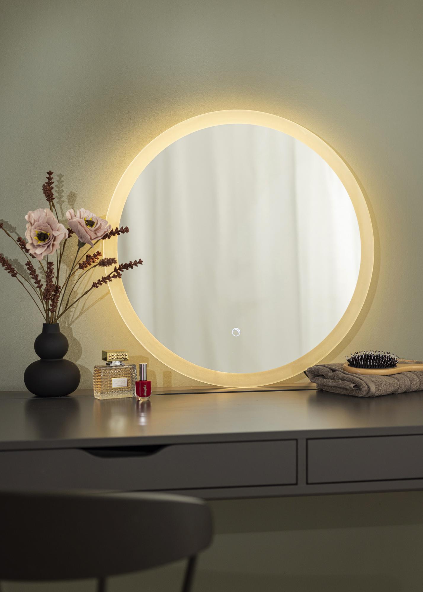 Lustro z wbudowanym oświetleniem sprawia, że poranna rutyna jest znacznie prostsza! Ta wersja ma klasyczny okrągły kształt i przyjemne łagodne światło o temperaturze 3000K. Eleganckie lustro ścienne doskonale nadaje się do łazienki, a dzięki niewielkiemu rozmiarowi, o średnicy 60 cm, może być również używane w pomieszczeniach o ograniczonej przestrzeni.