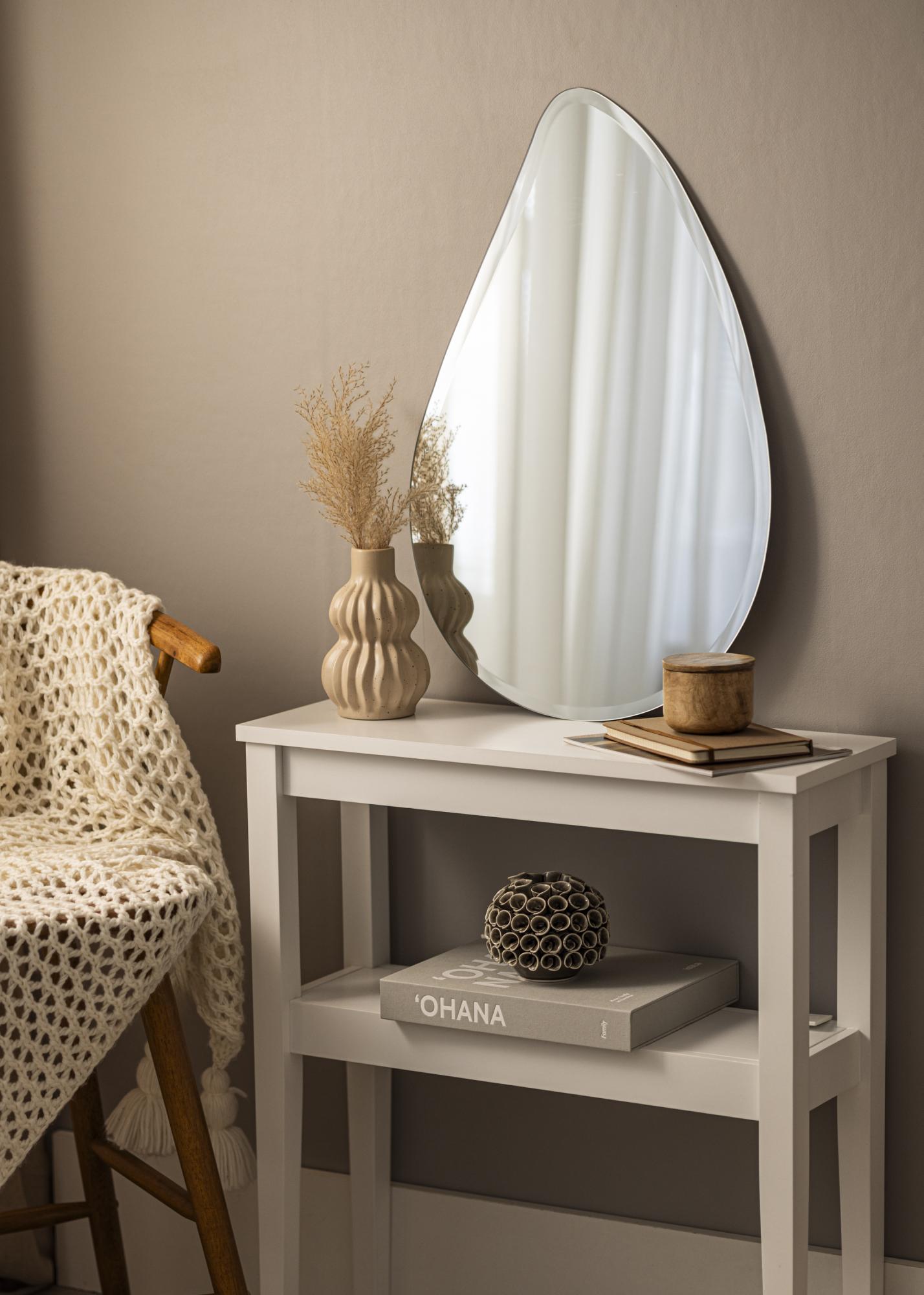 To kroplowa lustro wyróżnia się – z finezją! Miękki kształt w połączeniu z luksusowo fasetowaną krawędzią nadaje temu lustru bardzo elegancki wygląd. Dodatkowo podkreślone jest to faktem, że lustro jest bardzo cienkie i smukłe.