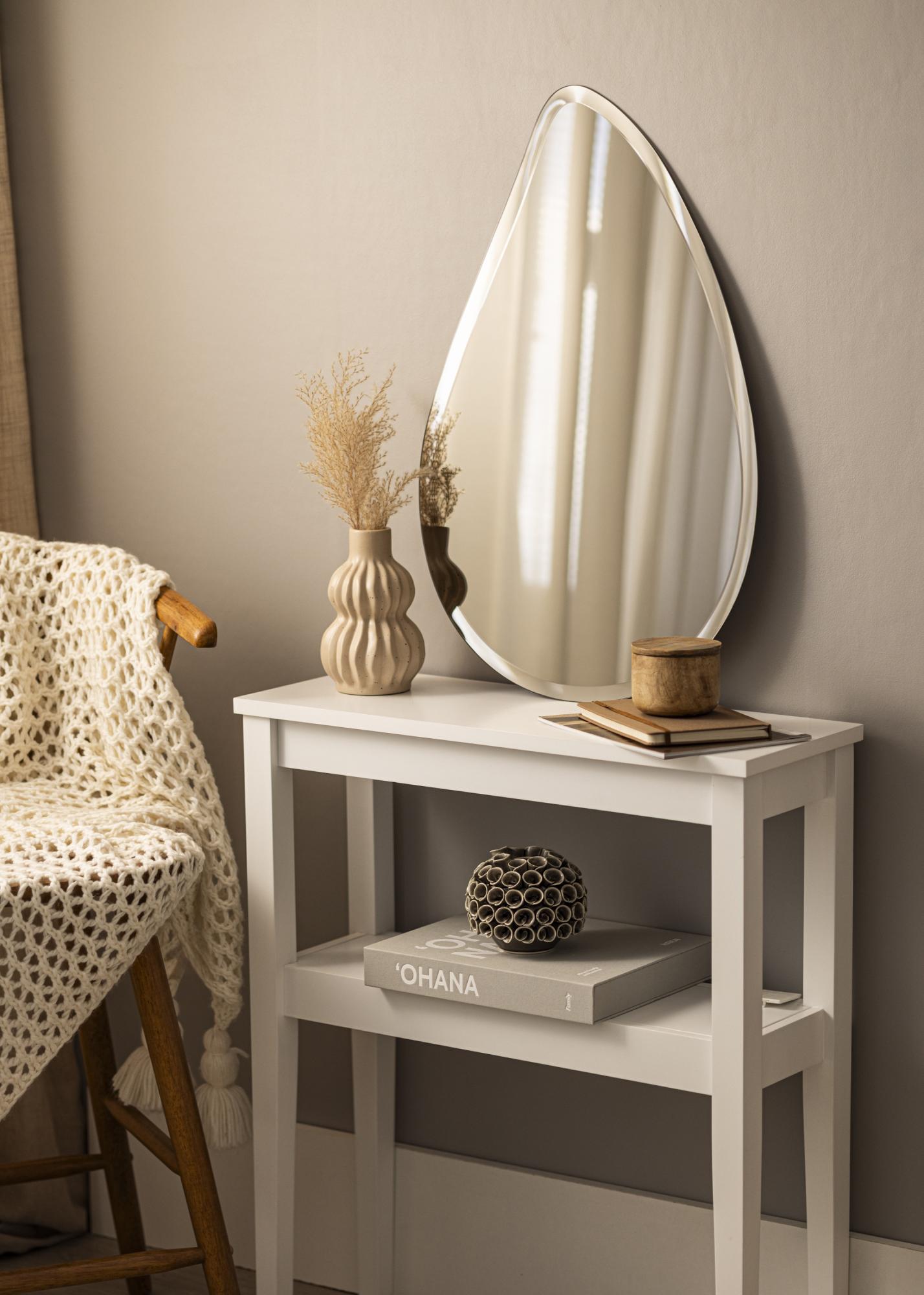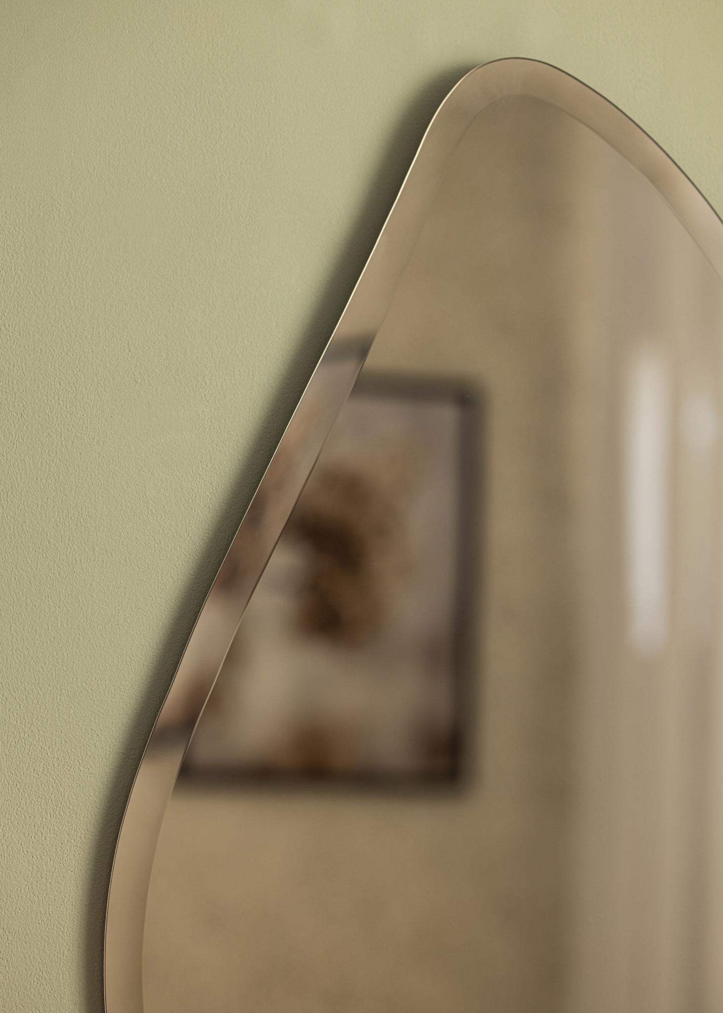To jest trendowe lustro w kształcie kropli z jeszcze bardziej modnym szkłem lustrzanym, barwionym na elegancki odcień ciemnego brązu. Barwione szkło lustrzane robi duże wrażenie, a piękny brązowy kolor łatwo dopasować do wielu różnych schematów kolorystycznych w aranżacji wnętrz. Lustro jest bardzo cienkie i nie ma ramy, co w połączeniu z luksusowo fazowaną krawędzią dodatkowo wzmacnia elegancki i nowoczesny wygląd. Jest to bardzo dekoracyjne lustro ścienne, które niewątpliwie przyciąga spojrzenia niezależnie od tego, w którym pomieszczeniu zostanie umieszczone – zarówno w salonie, jak i w korytarzu czy sypialni.