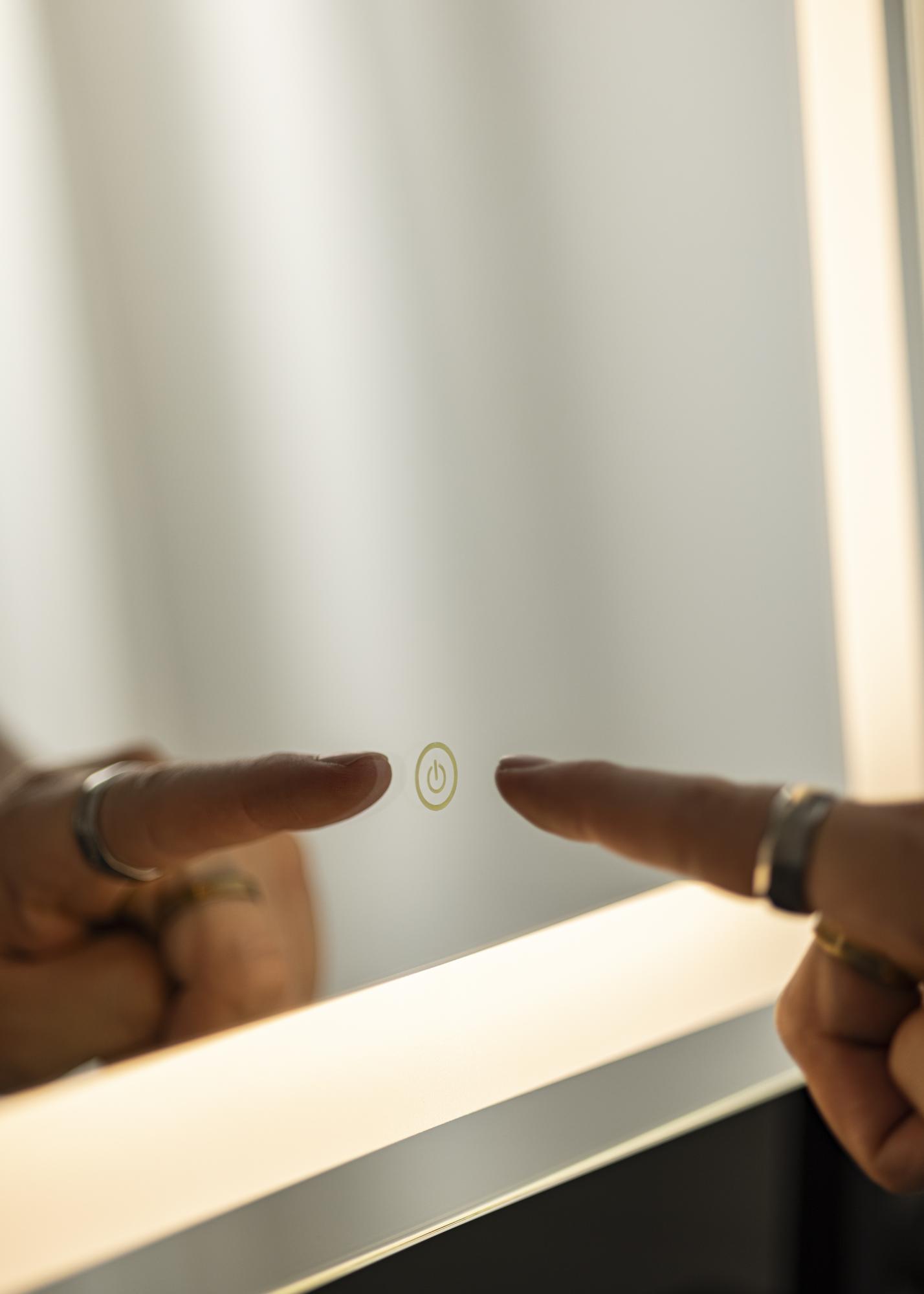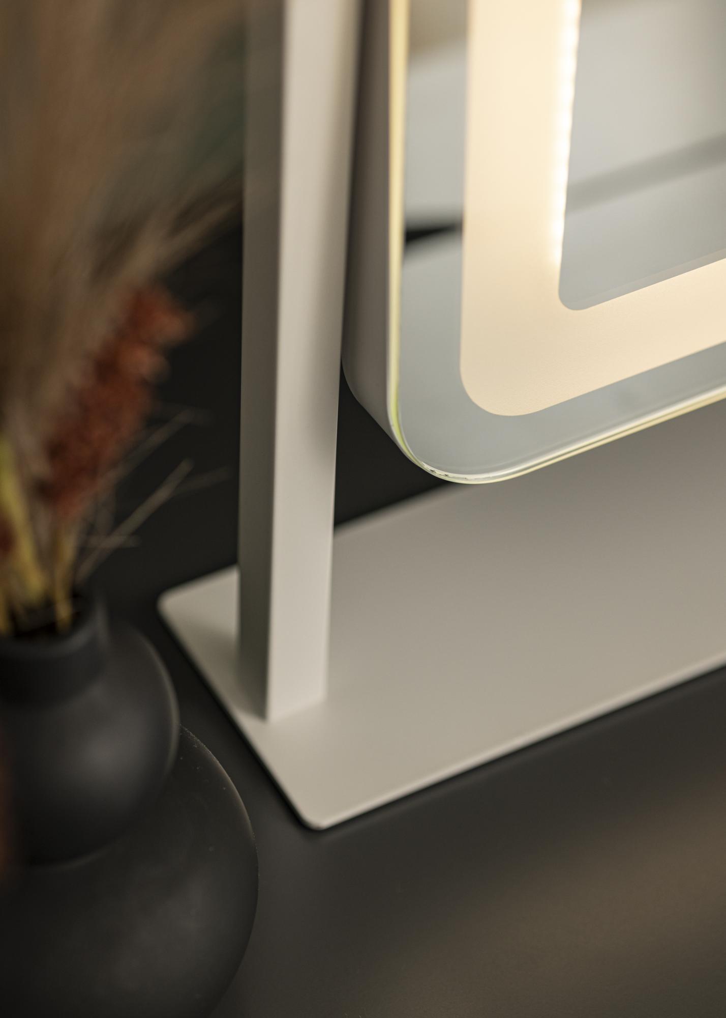 Lustro do makijażu dla tych, którzy cenią sobie modny design! To lustro szwedzkiego projektu od KAILA ma elegancki biały odcień i matową krawędź z zintegrowanym oświetleniem LED wokół lustra. Oświetlenie LED emituje ciepłe białe światło o temperaturze 3000K, idealne do aplikacji makijażu. Włączasz oświetlenie łatwo, naciskając przycisk dotykowy na ekranie i regulujesz jasność przytrzymując przycisk przez kilka sekund. Lustro do makijażu mierzy 45x60 cm i można je przechylać, aby łatwo przeglądać się pod różnymi kątami!