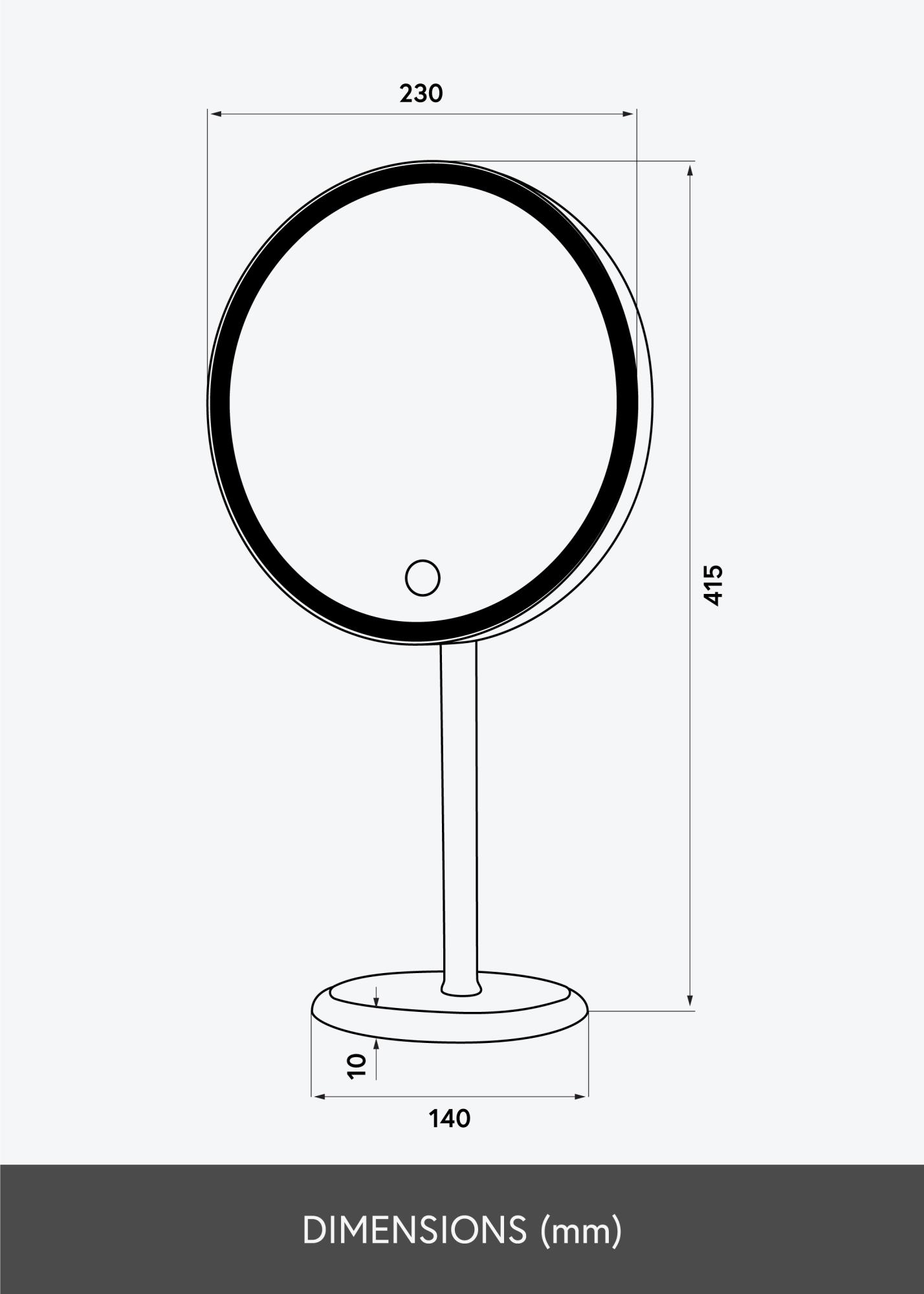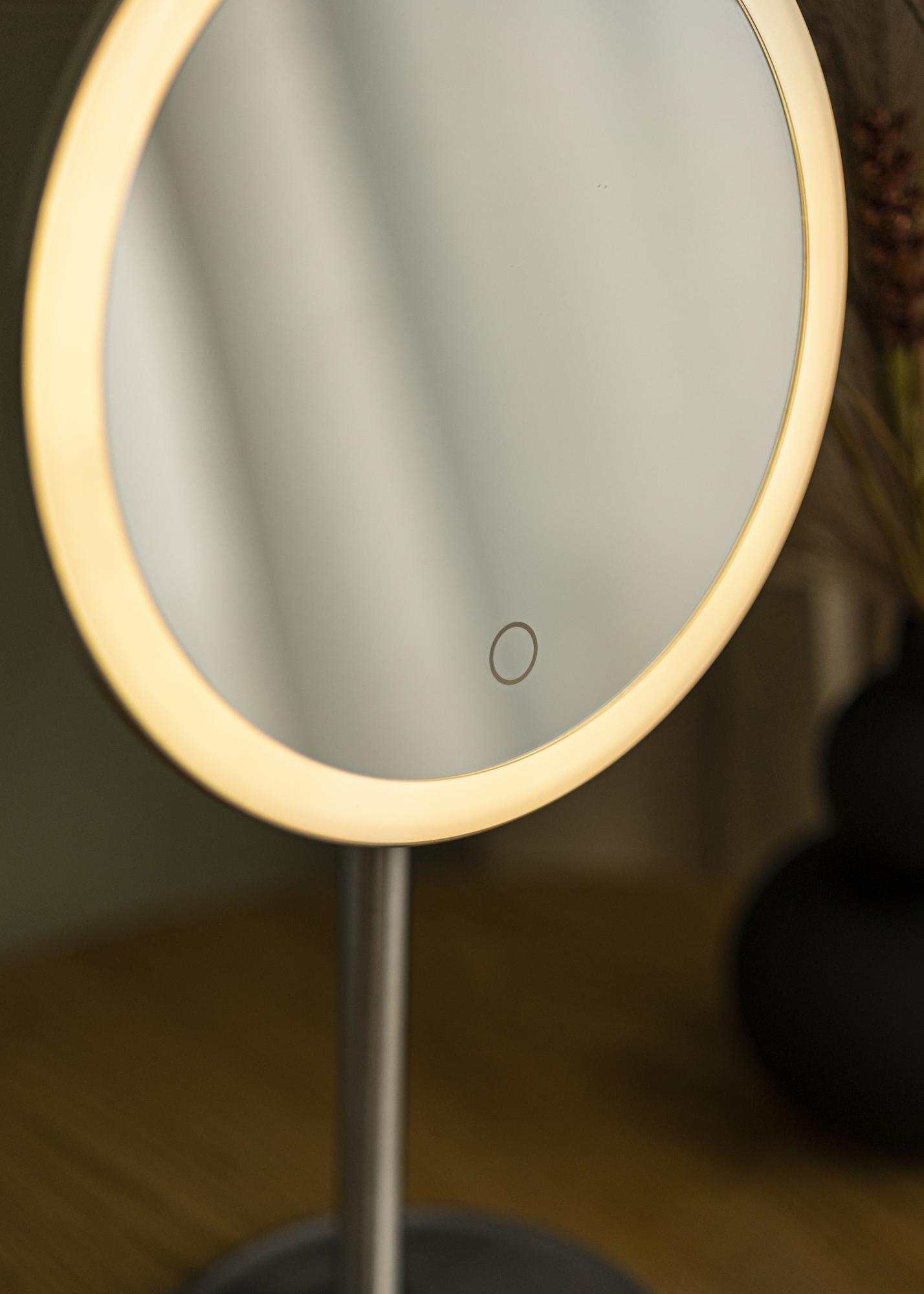 To jest klasyczne lustro łazienkowe z oświetleniem LED – idealne, gdy chcesz się przejrzeć z dobrym skupieniem. Zintegrowane oświetlenie ma regulowaną jasność i temperaturę barwową. Wystarczy przytrzymać przycisk dotykowy lustra przez kilka sekund, aby zmienić ustawienia światła. Lustro posiada wbudowany akumulator, który ładuje się za pomocą dołączonego kabla ładującego.