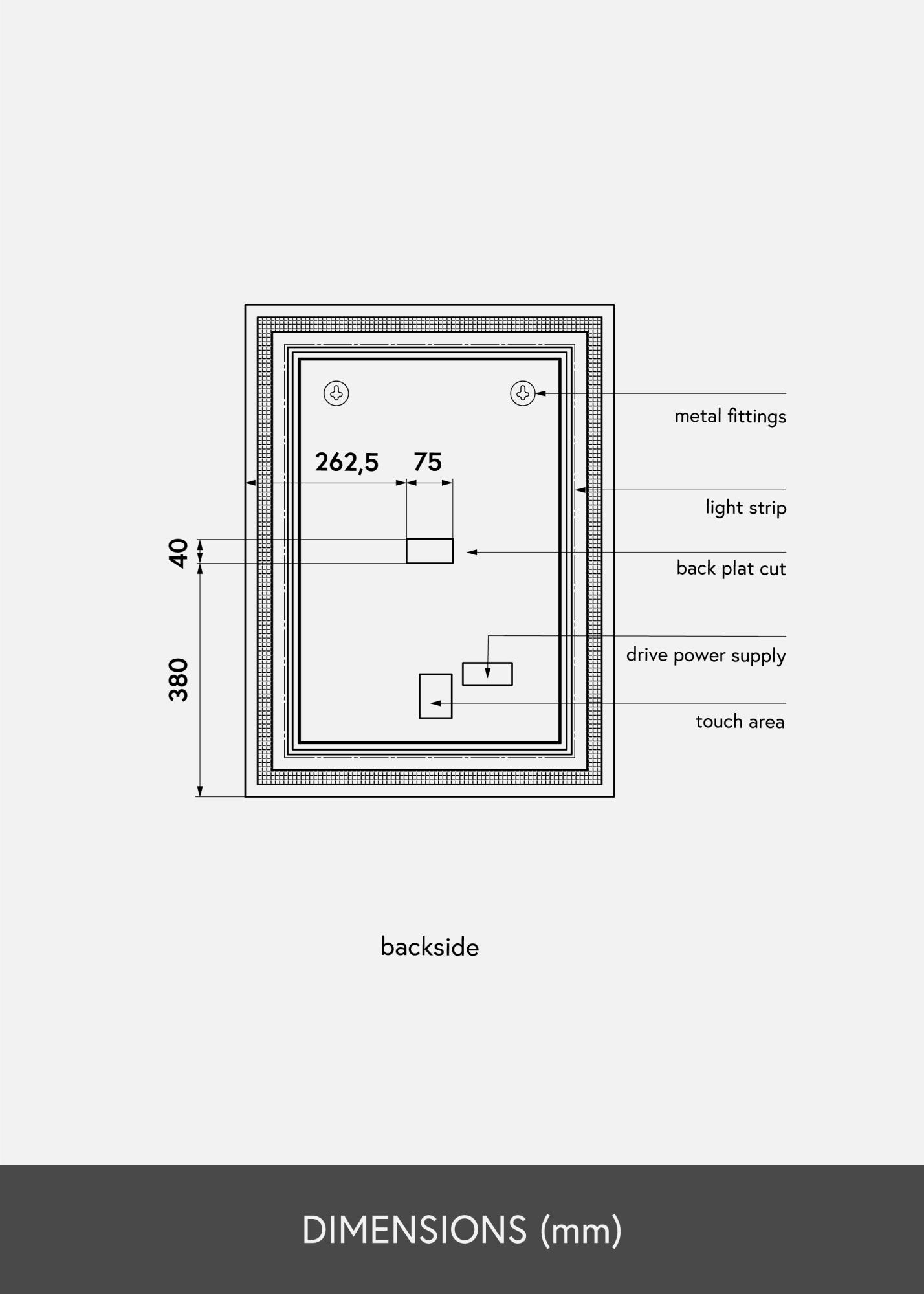 To lustro łazienkowe ma uchwyty na ścianę z tyłu i montowane jest na ścianie w pozycji pionowej. Lustro jest przeznaczone do stałej instalacji i powinno być zainstalowane przez elektryka. Aby lustro działało poprawnie, powinno być podłączone do zwykłego przełącznika, a nie do ściemniacza.