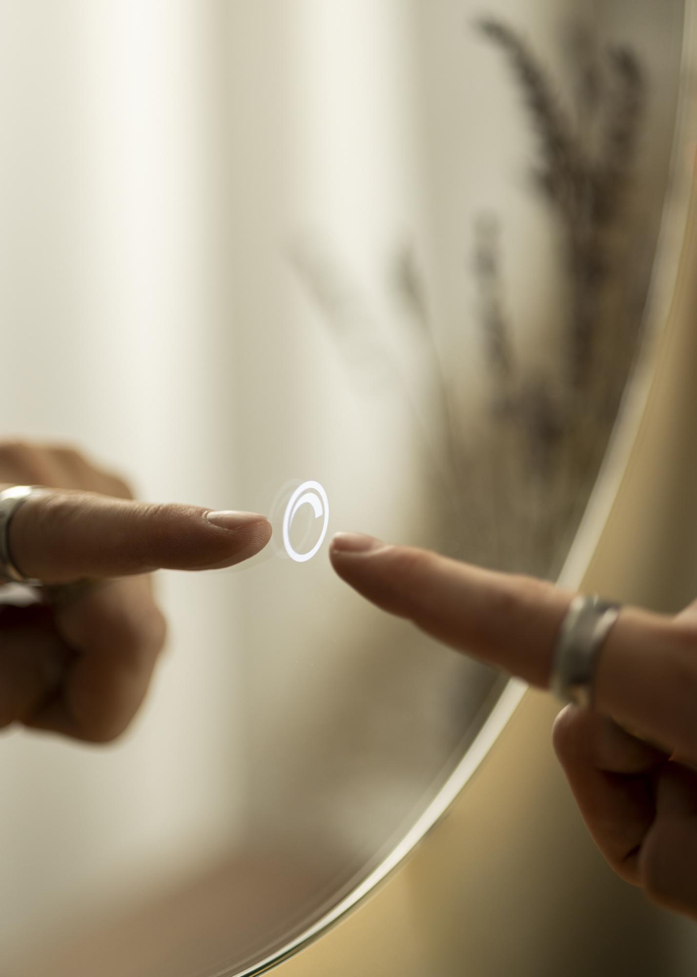 To jest klasyczne lustro łazienkowe w okrągłym kształcie od szwedzkiej firmy KAILA. Lustro łazienkowe ma zintegrowane, ściemniane oświetlenie LED wokół, które świeci od tyłu i daje piękne ciepłe białe światło do przodu w 3000K. Oświetlenie jest ściemniane i można łatwo dostosować jego intensywność, przytrzymując przycisk przez kilka sekund. Następnym razem, gdy włączysz oświetlenie, lustro zapamięta, jaka była ustawiona jasność. LED jest energooszczędnym źródłem światła, które daje równomierne i naturalne oświetlenie.