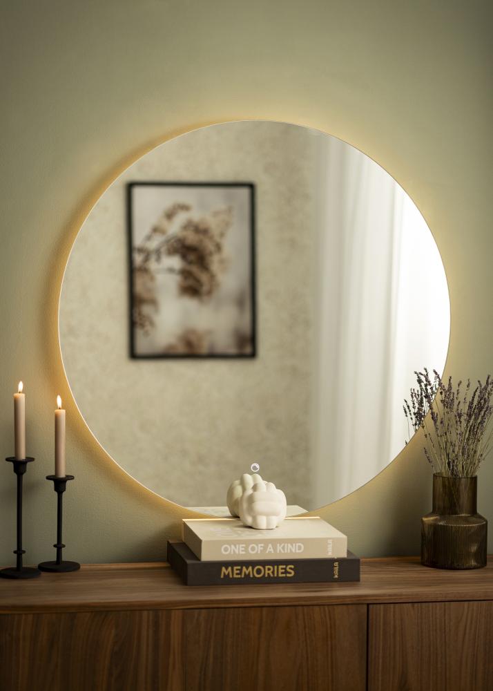 To jest klasyczne lustro łazienkowe w okrągłym kształcie od szwedzkiej firmy KAILA. Lustro łazienkowe ma wbudowane ściemnialne oświetlenie LED wokół, które świeci z tyłu i daje ładne, ciepłe, białe światło do przodu w 3000K. Oświetlenie jest ściemnialne, i możesz łatwo dostosować jego jasność, przytrzymując przycisk przez kilka sekund. Przy następnym włączeniu oświetlenia lustro zapamięta ustawioną wcześniej jasność. LED to energooszczędne źródło światła, które daje równomierne i naturalne oświetlenie.