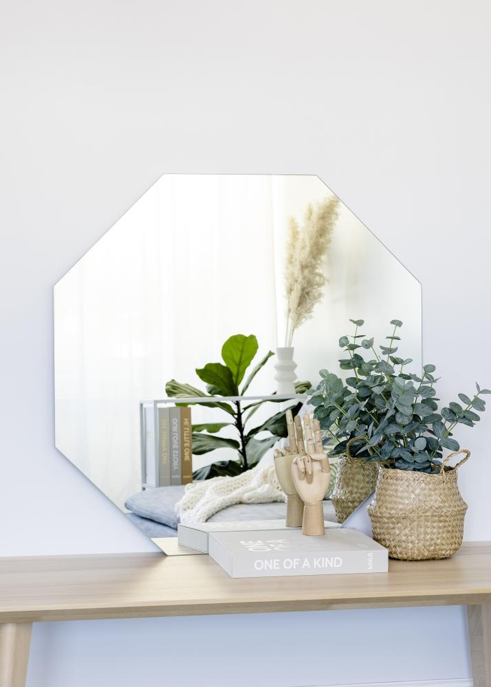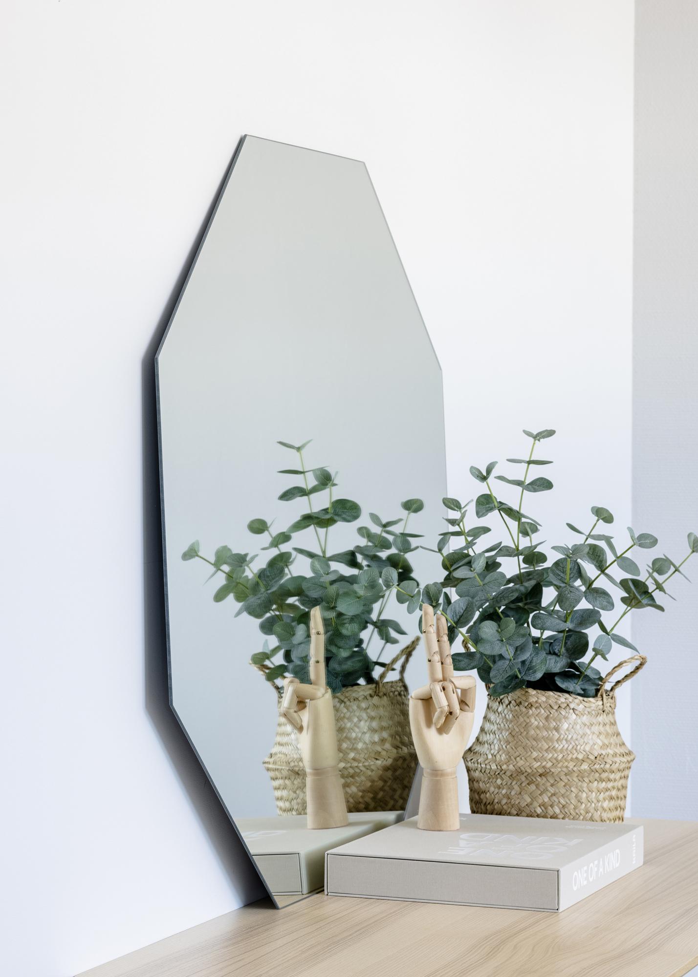 Ta stylowe lustro od KAILA jest idealne do salonu, przedpokoju lub sypialni. Ośmiokątny kształt bez ramy zapewnia doskonałą równowagę między minimalizmem a przepychem. Aranżując wnętrze za pomocą różnych kształtów i materiałów, możesz stworzyć dynamikę w domu, a to kanciaste lustro zapewnia miły kontrast do innych mebli i elementów dekoracyjnych. Lustro ma uchwyt ścienny i można je łatwo zawiesić na ścianie.