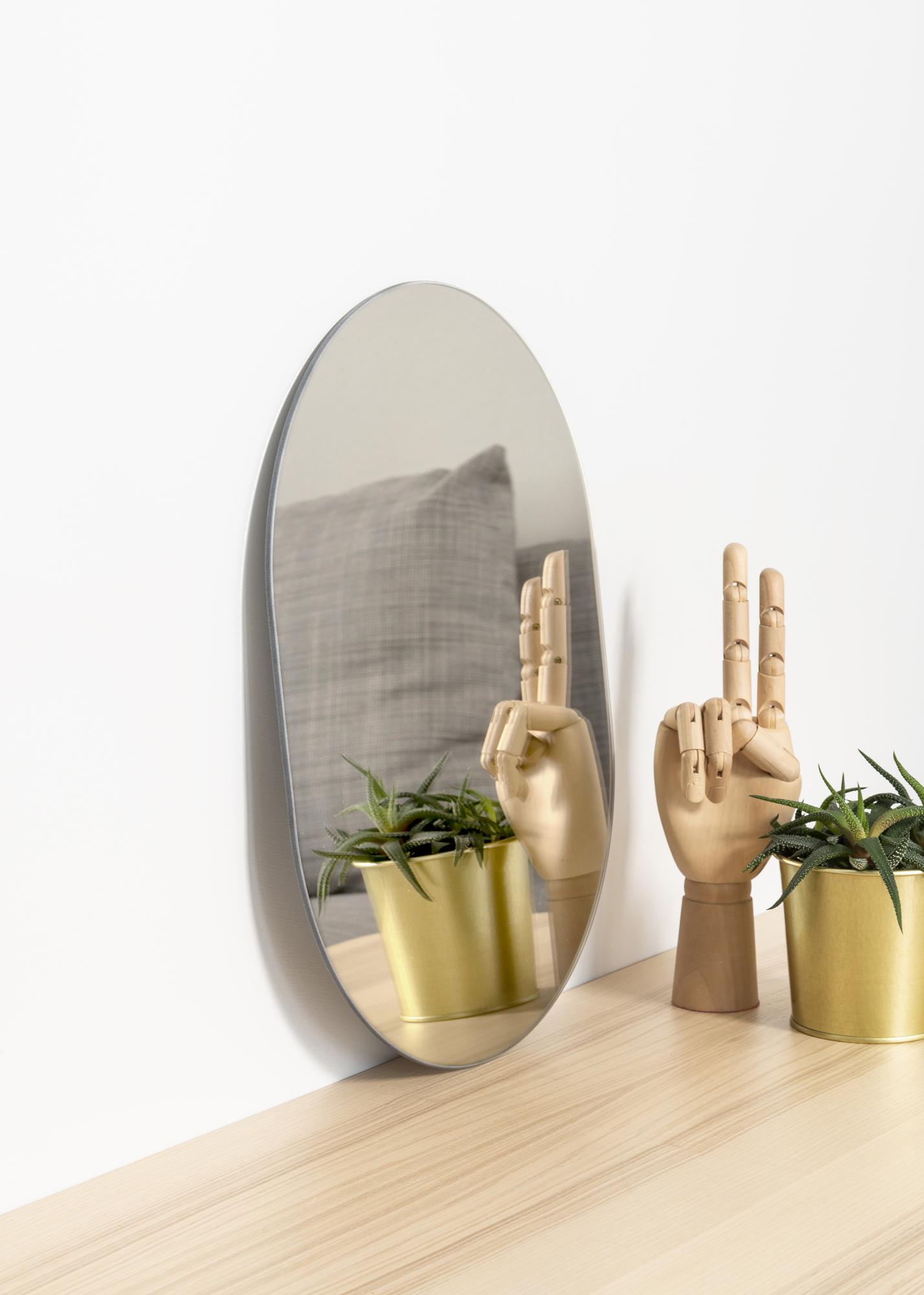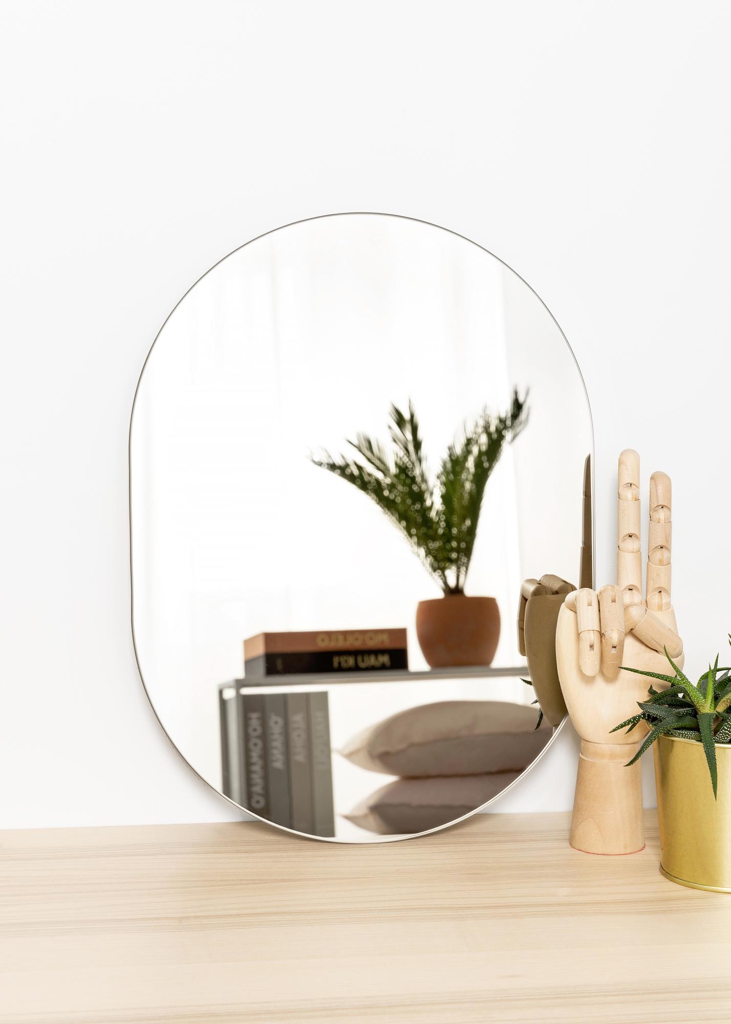Owalne lustro ma tak samo praktyczne wymiary jak lustro prostokątne, ale zachowuje tę samą elegancję co lustro okrągłe – innymi słowy, to doskonała forma lustra! To owalne lustro jest również bardzo cienkie i nie ma ramki, co dodatkowo podkreśla elegancki wygląd.